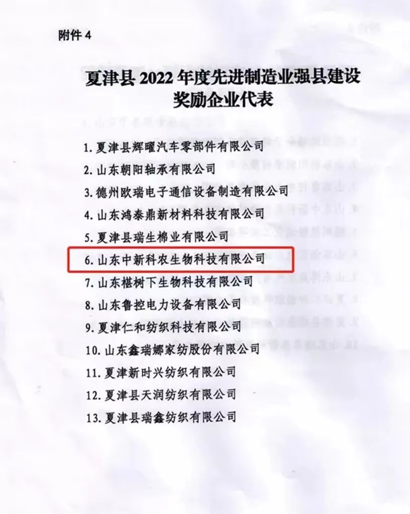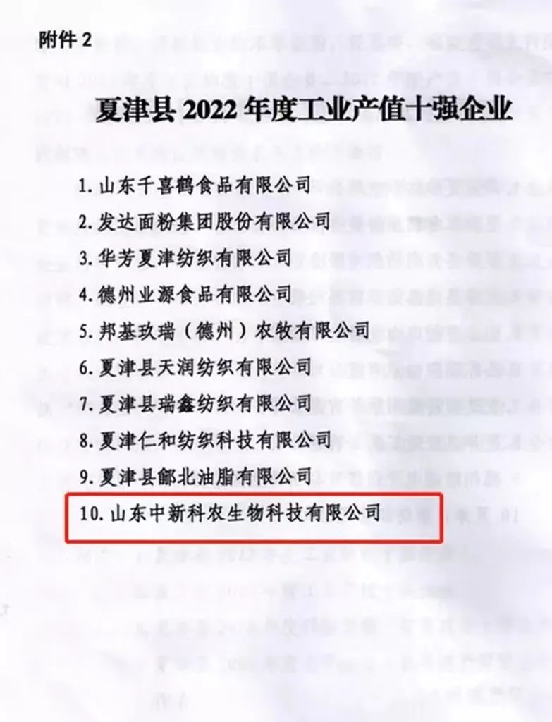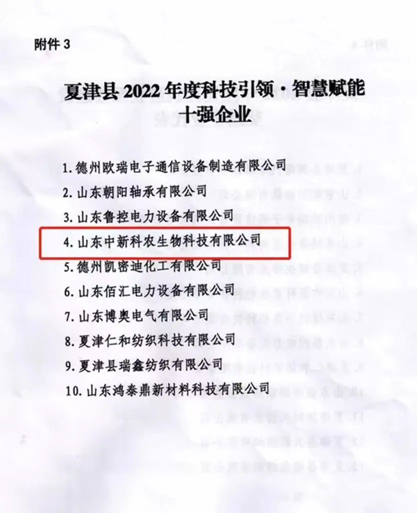 苏留庄镇中新科农生态农业有限公司荣获我县“工业产值十强企业”、“科技引领 • 智慧赋能十强企业”、“先进制造业强县建设企业“三项荣誉。