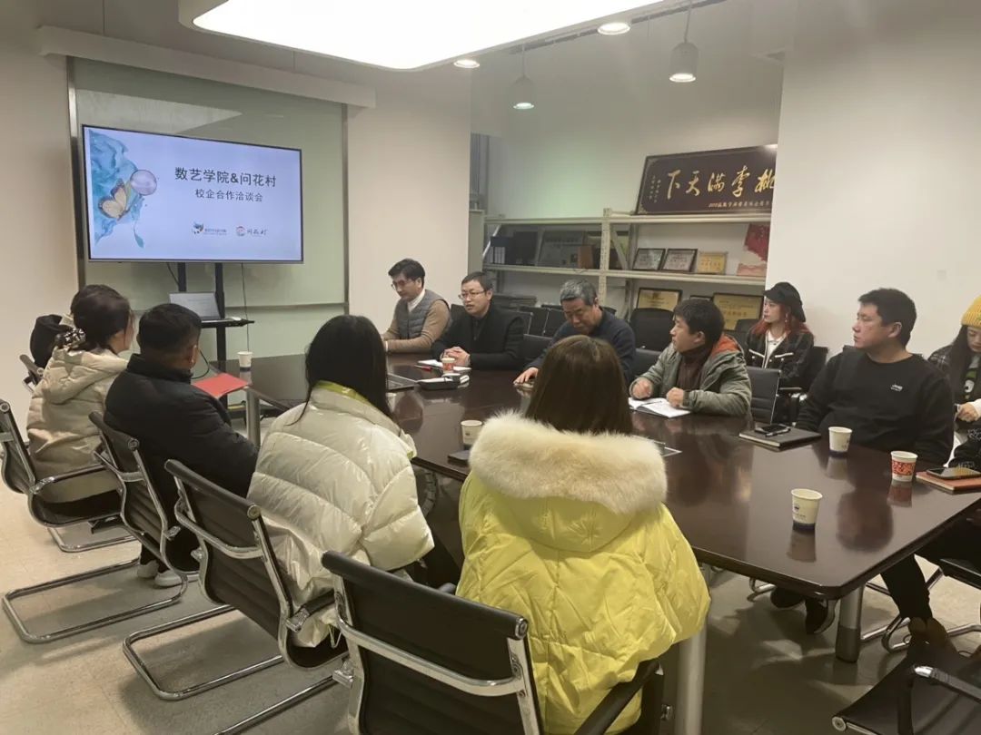 为贯彻集团产教融合、协同育人的发展思路,深入推进校企合作发展,数字艺术与设计学院领导于2022年1月7日上午对问花村文化旅游发展集团进行了企业走访调研并召开校企合作洽谈会。会议由数字艺术与设计学院副书记赵壁主持,数艺学院院长、各系主任、中心干部以及问花村集团董事长、总经理、办公室主任参加。