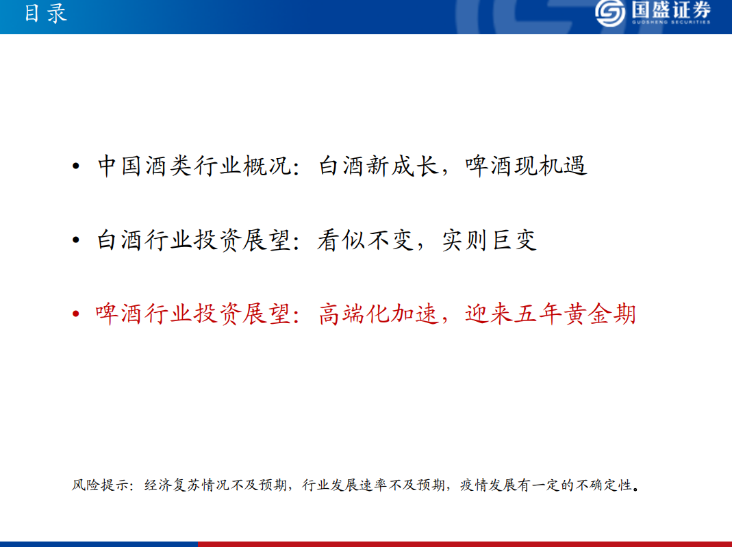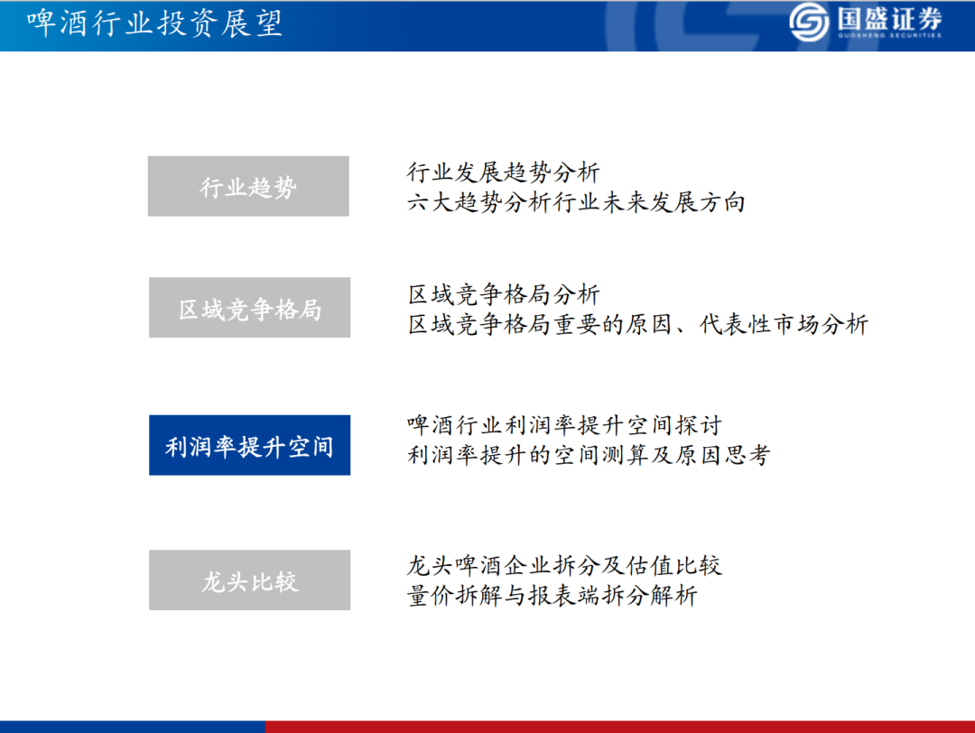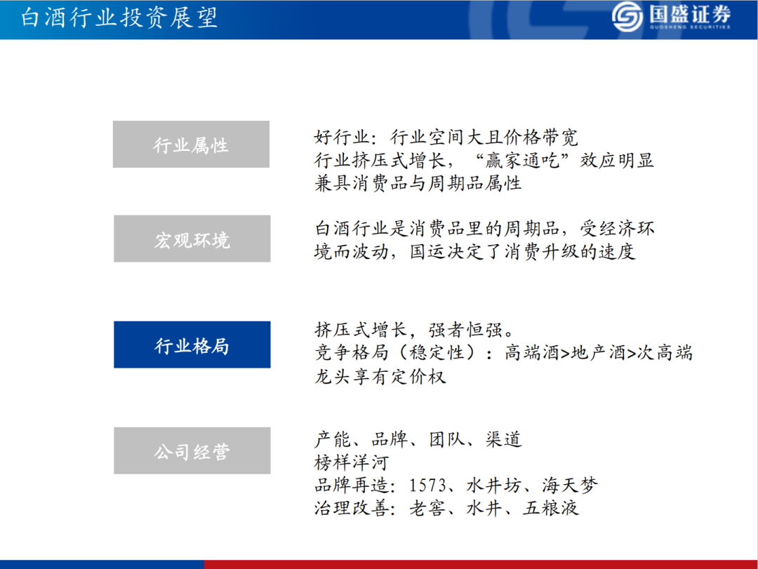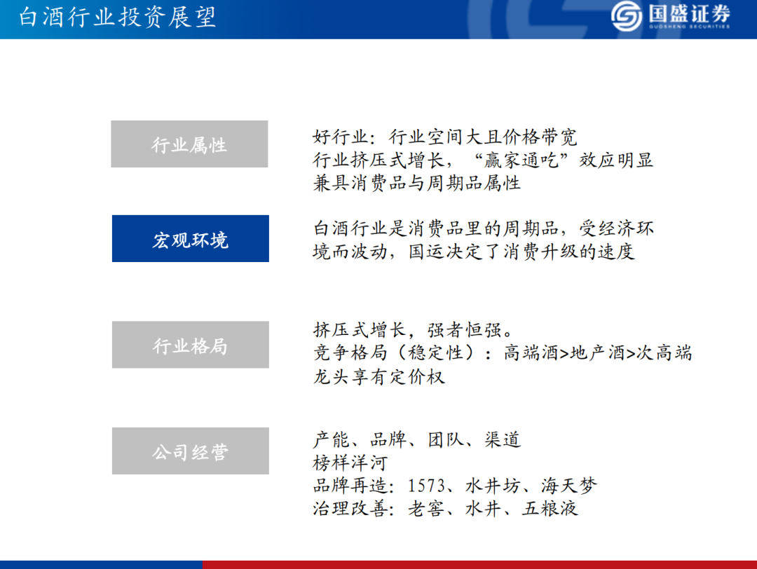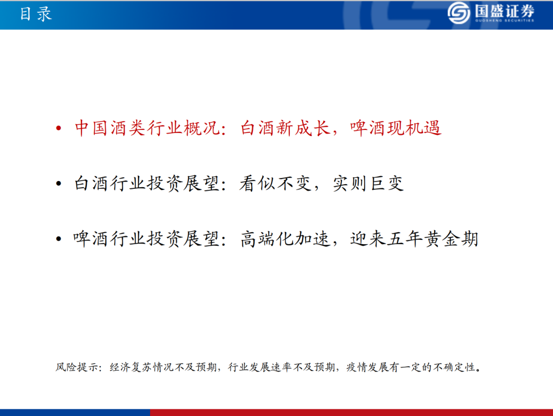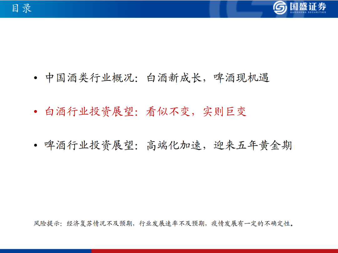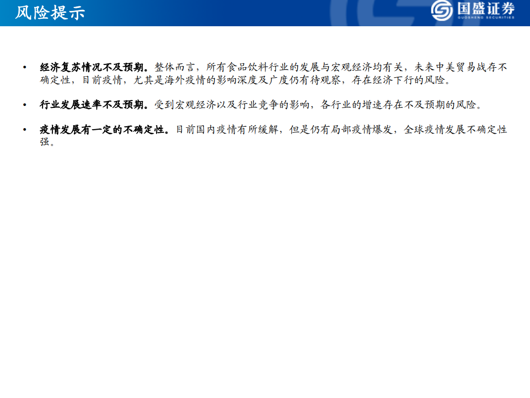 重要声明:本订阅号是国盛证券食品团队设立的。本订阅号不是国盛食品团队研究报告的发布平台。本订阅号所载的信息仅面向专业投资机构,仅供在新媒体背景下研究观点的及时交流。本订阅号所载的信息均摘编自国盛证券研究所已经发布的研究报告或者系对已发布报告的后续解读,若因对报告的摘编而产生歧义,应以报告发布当日的完整内容为准。本资料仅代表报告发布当日的判断,相关的分析意见及推测可在不发出通知的情形下做出更改,读者参考时还须及时跟踪后续最新的研究进展。