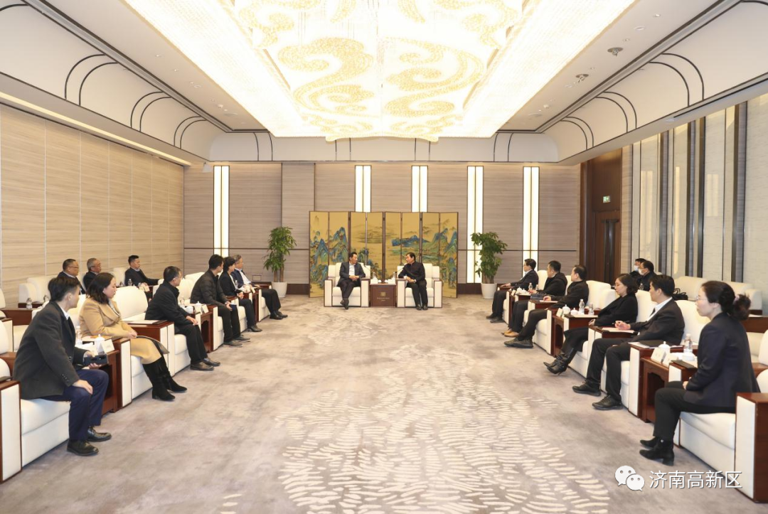 王宏志对客人的到来表示欢迎,并简要介绍了济南以及高新区经济社会发展相关情况。他表示,当前济南正以高质量建设新旧动能转换起步区为抓手,积极推进黄河重大国家战略落地落实,战略地位日益凸显,发展势头更加强劲。济南高新区作为济南产业发展主引擎,聚焦电子信息、智能制造、生物医药等主导产业,坚持创新驱动,积极塑造产业发展新优势,产业集群不断扩大,产业能级不断进阶提档。中国电子商会发展理念先进、实力雄厚,与高新区产业发展合作存在高度契合点。欢迎中国电子商会积极参与推进济南高新区发展建设,共享发展机遇。济南高新区将持续优化营商环境,为中国电子商会以及商会会员企业在高新区发展创造良好环境,提供优质服务,努力实现互利共赢。