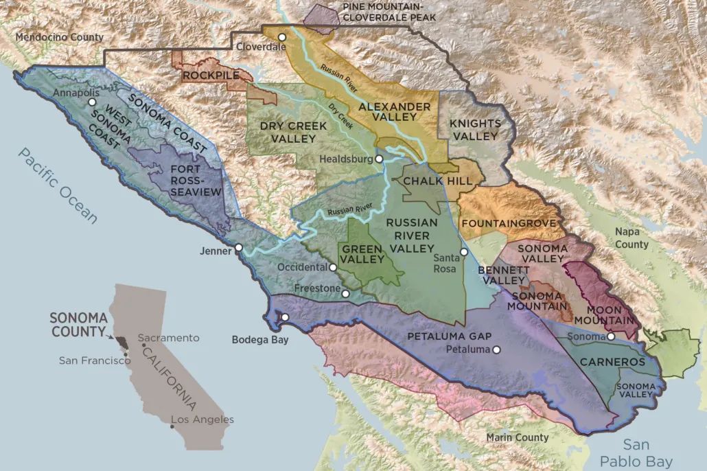 索诺玛种植的葡萄远比纳帕种植得多,在更凉爽的区域,索诺玛又更高的潜力,特别是靠近海岸的地区