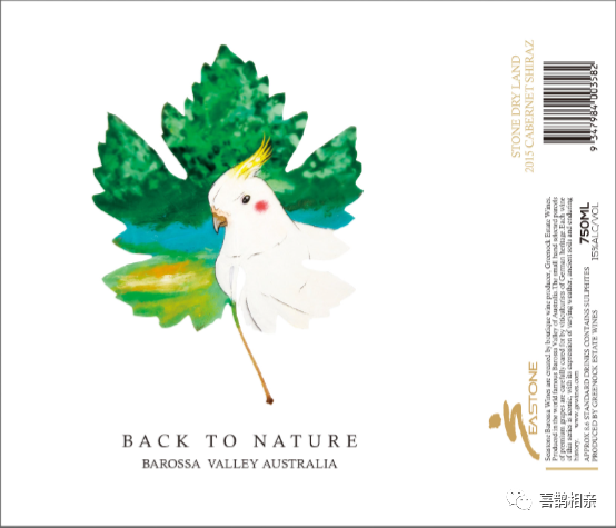4. 创新酒标设计-葡萄叶画(在采自葡萄园的葡萄叶上描绘生活在当地的动物们在巴罗萨当地,凤头鹦鹉就相当于咱们的喜鹊,预示会有好事发生)