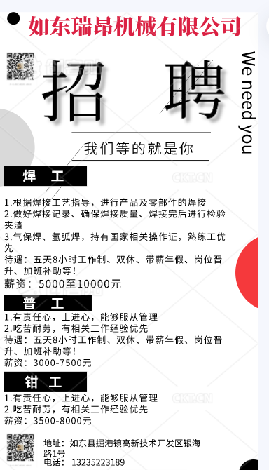 如东瑞昂机械有限公司招聘公告