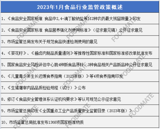 2023年1月食品行业监管政策概述