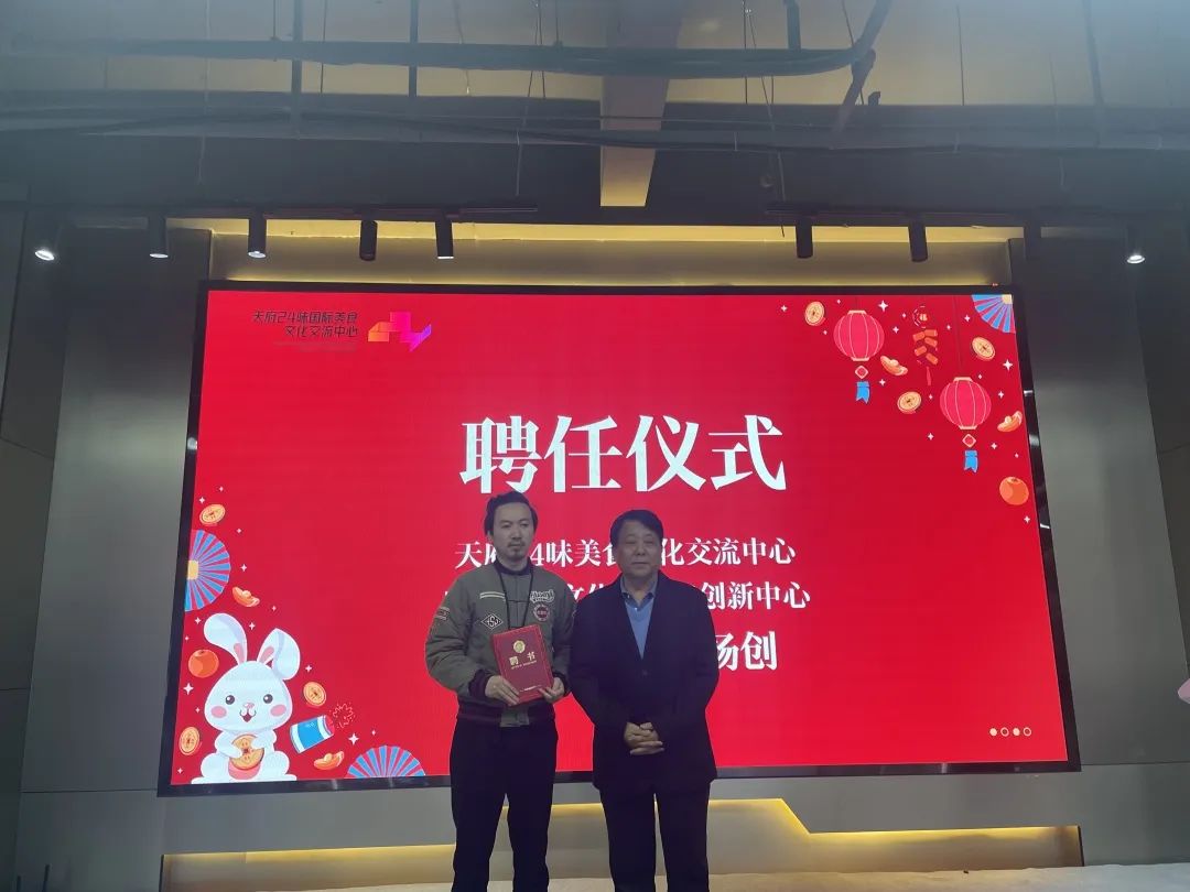 同时,会上还举行了聘任仪式。聘请杨创(创品牌战略CEO、川菜博物馆首席品牌官、颐和园西南区品牌官、武侯祠文创品牌官、方正创黑字体设计师、成都创意周评委、中华财神文化推广大使、都江堰文旅首席创意顾问、南台月集团首席创意顾问、幺麻子食品首席创意顾问)担任天府24味美食文化交流中心、成都美食文化交流与创新中心推广大使,聘请王安祺担任青羊区美食文化促进会秘书长。