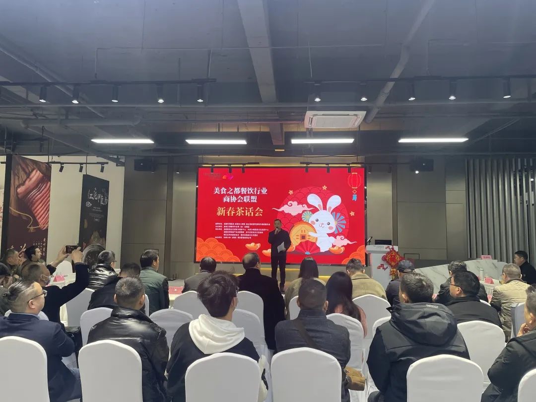 此次新春茶话会由市商务局、市工商联、致公党成都市委海外联络委员会支持,美食之都餐饮行业商(协)会联盟、天府24味美食文化交流中心、成德眉资美食产业发展联盟主办,成都美食文化交流与创新中心、金牛区美食文化促进会、锦江区时尚美食协会、青羊区美食文化促进会承办,天府24味(成都)商业管理有限公司协办。来自四川省餐饮文化促进会、双流区餐饮行业协会、天府新区餐饮美食行业协会、温江区餐饮娱乐行业协会、青白江区餐饮行业协会、彭州市餐饮行业协会、郫都区餐饮同业公会、各主城区餐饮行业协会及相关供应商企业的负责人共30余人汇聚一堂,交流经验共叙情谊、共商发展大计。