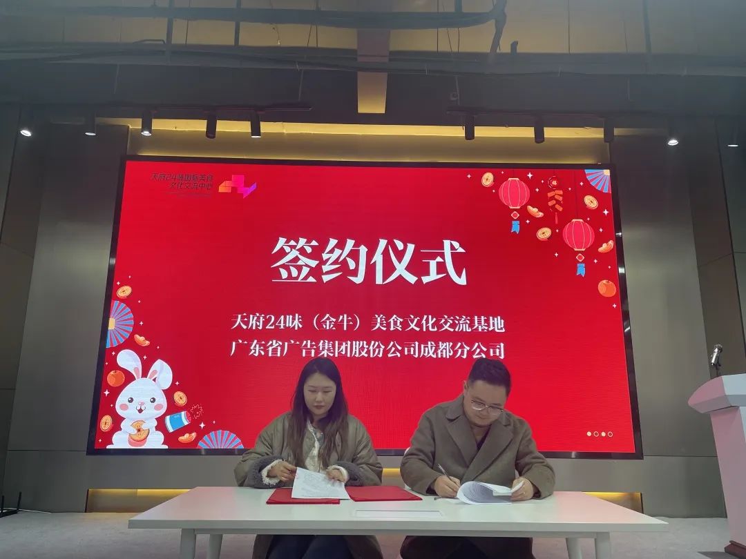 为充分整合优质资源,四川天府二十四味美食文化交流中心与广东省广告集团股份有限公司成都分公司就各类展会活动和品牌营销宣传等方面签订合作框架协议。