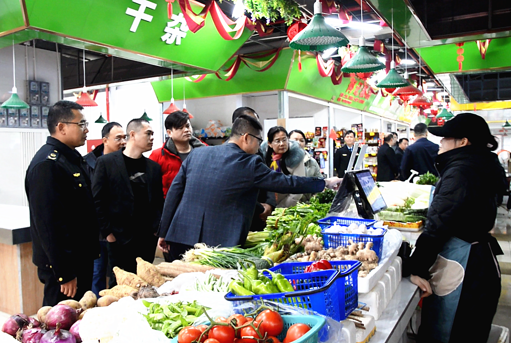 为落实平南县委县政府关于经济工作的部署,激发市场活力,2023年2月7日上午,平南县市场监管局组织召开餐饮行业振兴暨碧绿菜园智慧生鲜市场发展座谈会。县市场监管局、县住房城乡建设局、县城乡综合行政执法大队、县工业信息化和商务局、县文化广电体育旅游局相关领导,碧绿菜园智慧生鲜市场开办方及市场经营户代表,县人民医院食堂及12家重点餐饮单位代表等参加了座谈会。会前,参会人员到平南县大千烧鹅美食城参观,该店负责人从厨房布局、原材料采购查验、菜品加工制作等方面逐一做经验介绍。参会人员还到碧绿菜园智慧生鲜市场参观,该市场开办方负责人介绍了该市场的智慧系统、食品质量保障、食品价格和供应等情况。