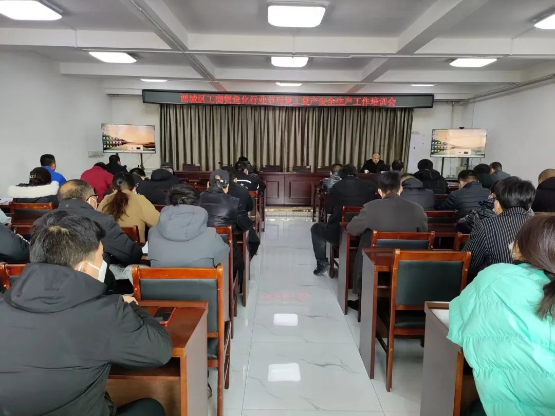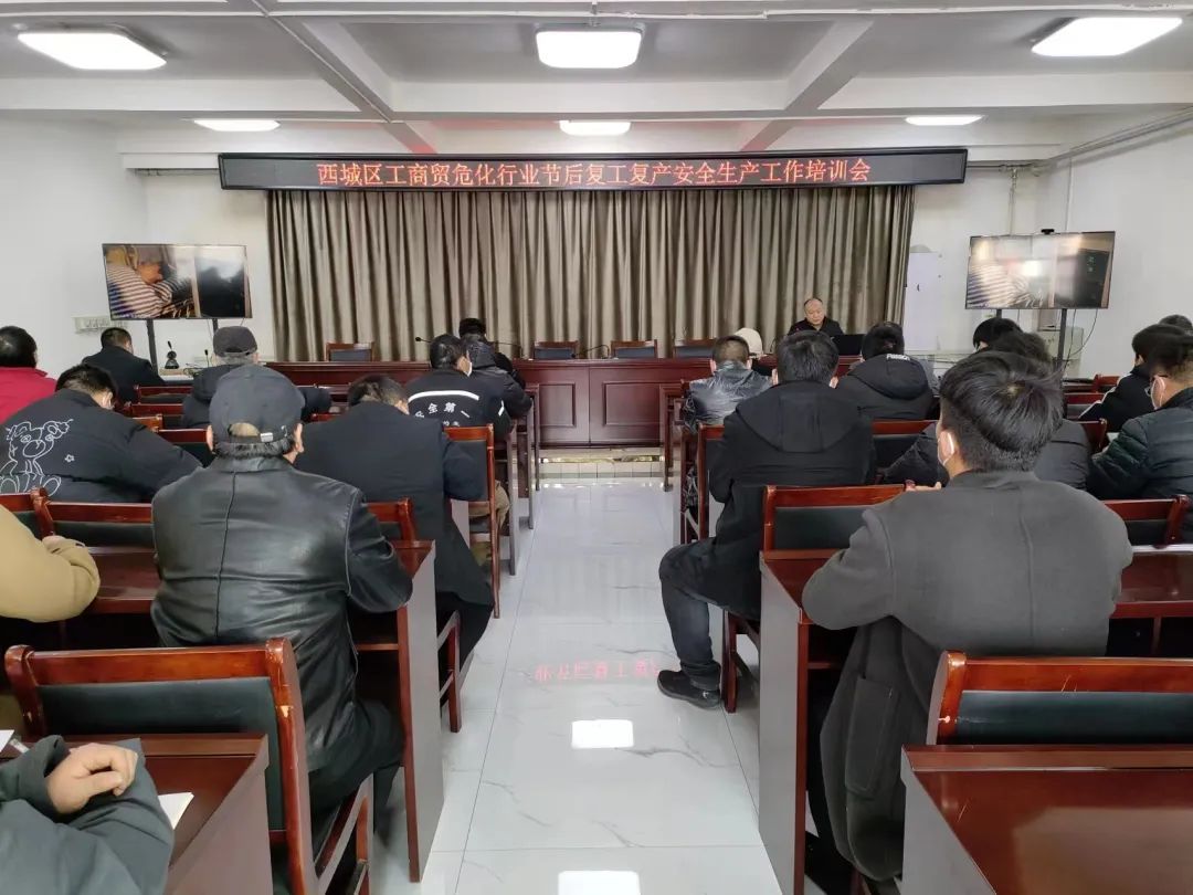 2月8日上午,西城区组织工矿商贸危化行业企业负责人及安全管理人员召开安全生产专题培训会暨节后复工复产安全生产工作培训会。会议由武装部长杨茂同志主持,市应急局谷彦会队长受邀参加,街道应急办全体人员,辖区内各企业负责人、安全管理人员共计80余人参加了此次培训。