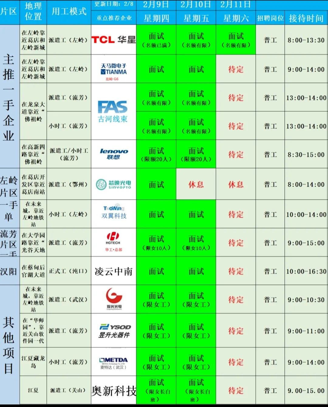 2月9日企业招聘安排
