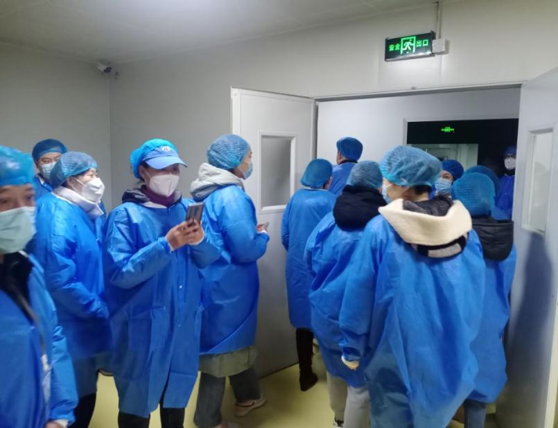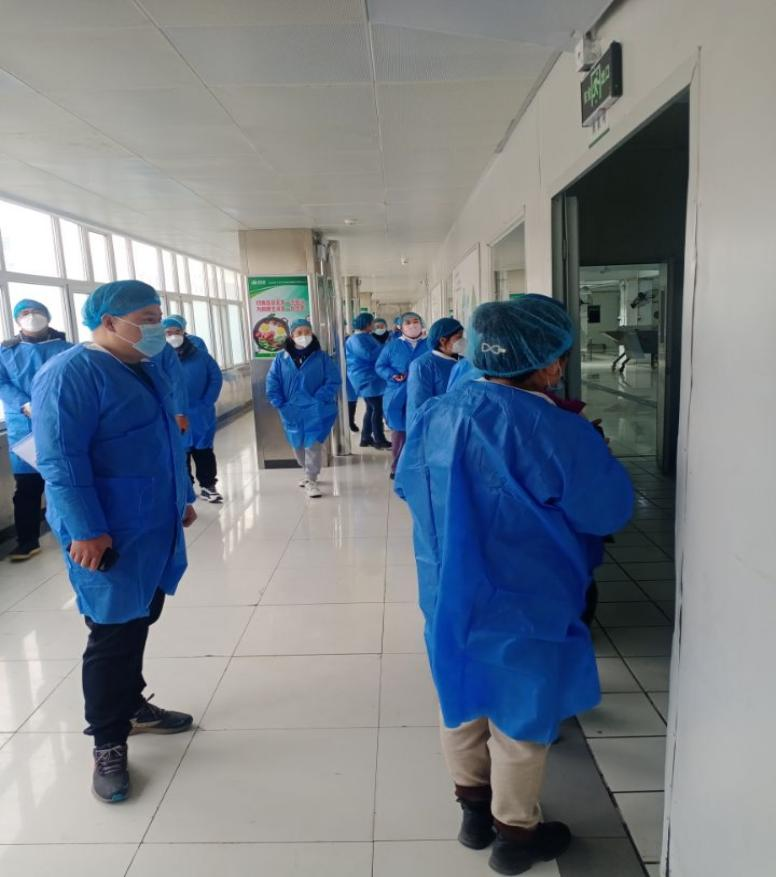 家长们换上一次性防护服,经严格消杀后进入仓库和食品加工区的外围,考察了卫生状况、设施设备、配餐流程。