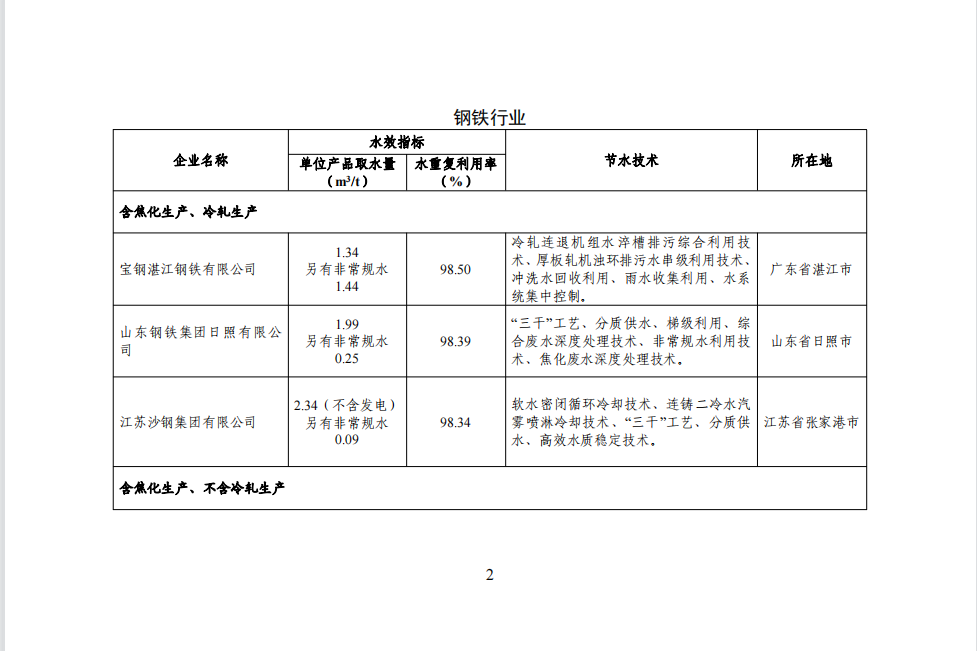 2023年1月3日,工业和信息化部网站公示了2022年重点用水企业、园区水效领跑者名单。