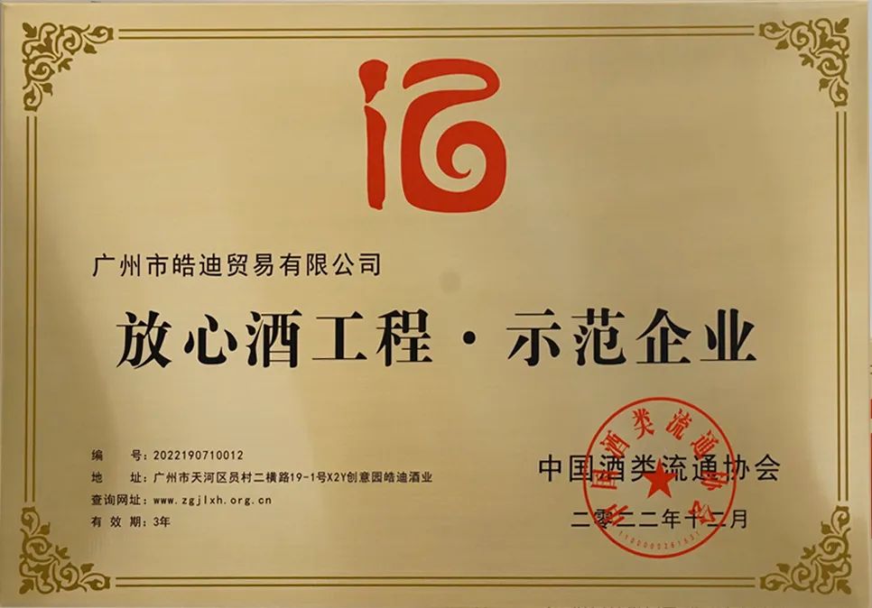 2023年2月8日上午,广东省酒类行业协会陈兴武秘书长一行莅临皓迪商业总部,代表中国酒类流通协会、广东省酒类行业协会向皓迪公司、皓迪公司旗下No.137贵州习酒体验馆授牌及颁发证书并与公司有关领导座谈交流。在2022年全国放心酒工程评选工作中,皓迪公司荣获【放心酒工程·示范企业】称号;皓迪商业旗下No.137贵州习酒体验馆荣获【放心酒工程·示范店】荣誉称号。中国酒类流通协会(以下简称中酒协)进行的这一系统化的酒类流通评价和展示工程,正是流通升级助力酒业转型的具体表现。中酒协从2013年开始开展以行业自律,净化市场为目的的“国家级放心酒示范工程”,坚持通过各省、市协会审查推荐,中酒协审核,专家审议,业内公示的方式,通过半年多的评审工作,从全国25个省、市、自治区范围内最终审核完成了200余家国家级放心酒示范店(企业)的审核工作。皓迪酒业成立于2002年,主要涉足酒业贸易、供应链管理、产品开发、文化投资等产业。经历20余年稳步发展,皓迪酒业已成为广东地区著名的保真酒水供应链企业。目前,皓迪酒业是贵州茅台酒及系列酒、贵州习酒、赖茅酒、董酒、汾酒、人头马集团、帝亚吉欧集团等酒类头部企业的官方授权经销商。皓迪酒业从成立之初就与国内外知名酒企建立起稳定合作,实现全线产品源头采购,保证消费者购买到的每一瓶酒都是真品。同时皓迪酒业与广东省多家不同行业的知名企业建立了长期稳定的合作关系。在发展过程中,皓迪酒业以“开拓为先、制度为本、管理为上、服务为重”的企业使命和坚持“酒香、风正、人和”的企业理念,不断进行企业的产品与服务升级。