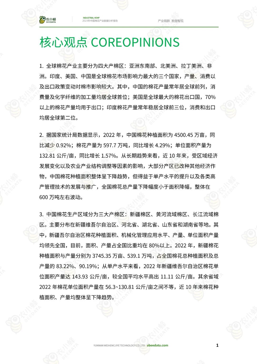 一站式行业报告获取学习社群、下载本篇原文完整版,请扫描下方二维码付费加入星球社群。年更新报告超 50000+优质行业研报,原文均可下载、年费仅需 99 元,3杯奶茶钱、让你深度洞见一整年。本篇行业报告:【农小蜂】2023年中国棉花产业数据分析报告;完整版页数共21页,为保障星球社群会员权益、仅展示前10页、成为会员后可无限制下载原文报告及历史行业研究报告。