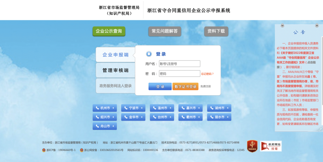 浙江省守合同重信用企业公示申报系统网址:https://szxt.zjamr.zj.gov.cn(点击进入)