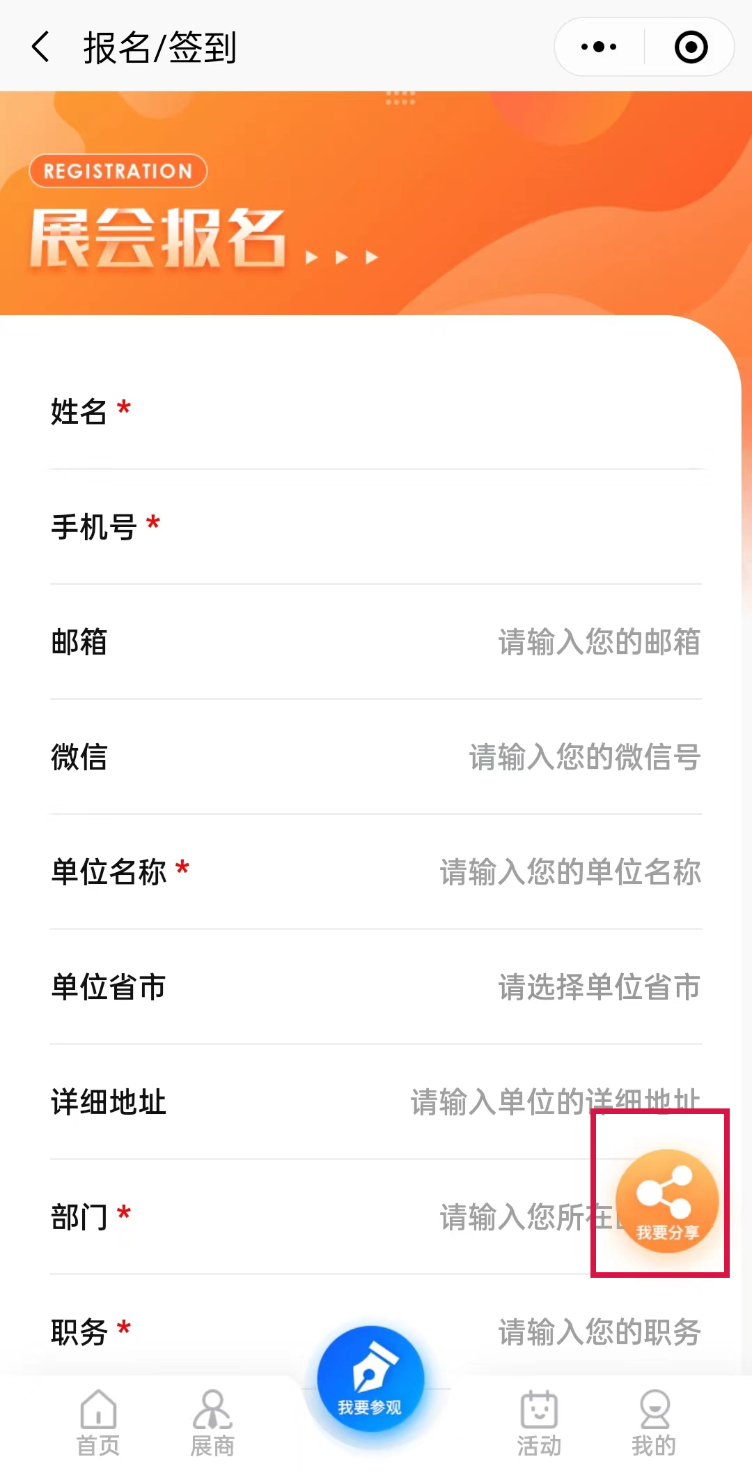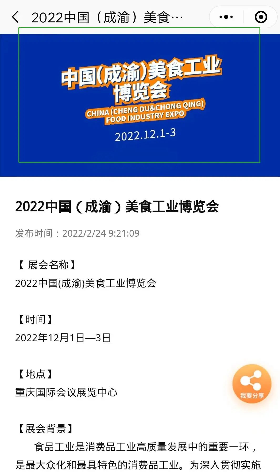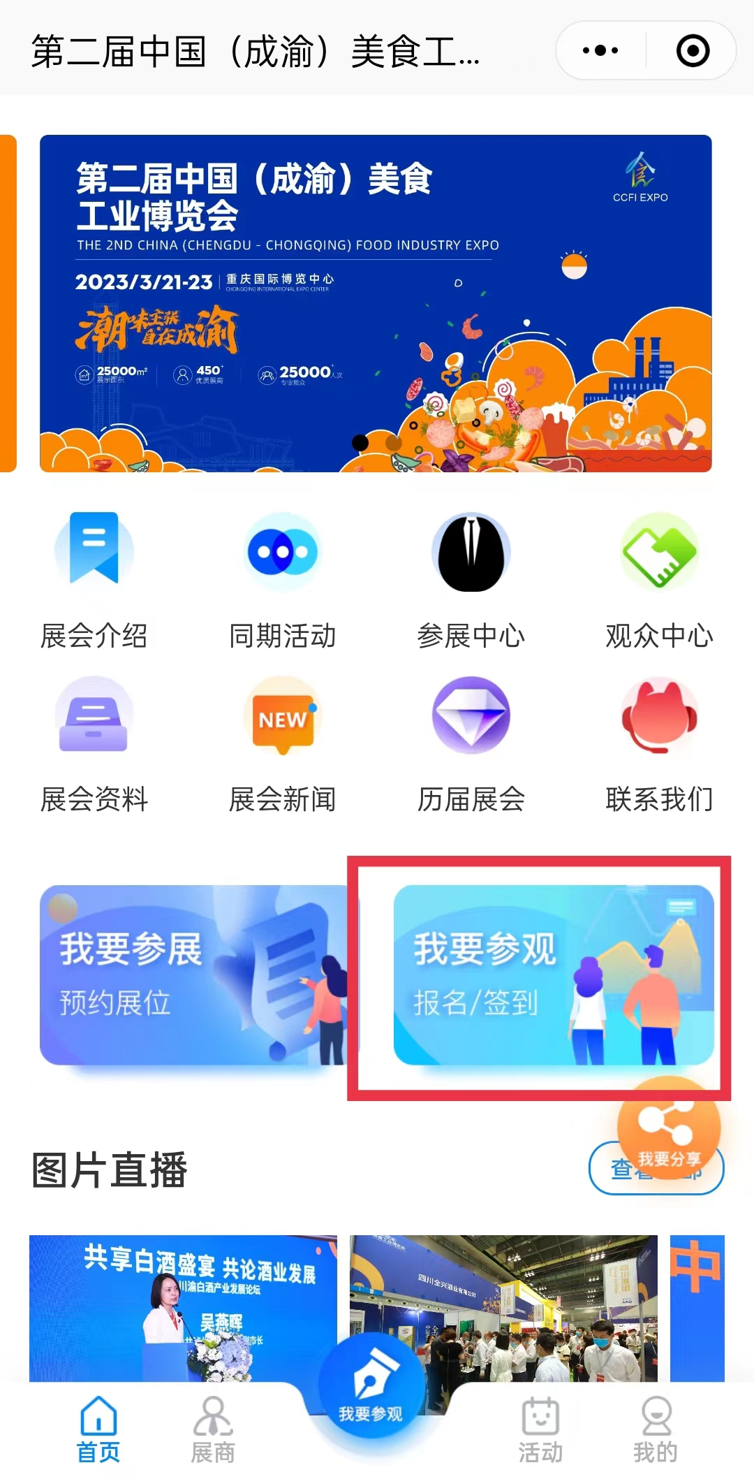 2.活动时间内展商可在【美食工业博览会】微信小程序上将自己的邀请海报,分享好友并邀请好友参与预登记报名。3.展商必须通过专属链接或专属海报才会进入该展商的邀约名单。