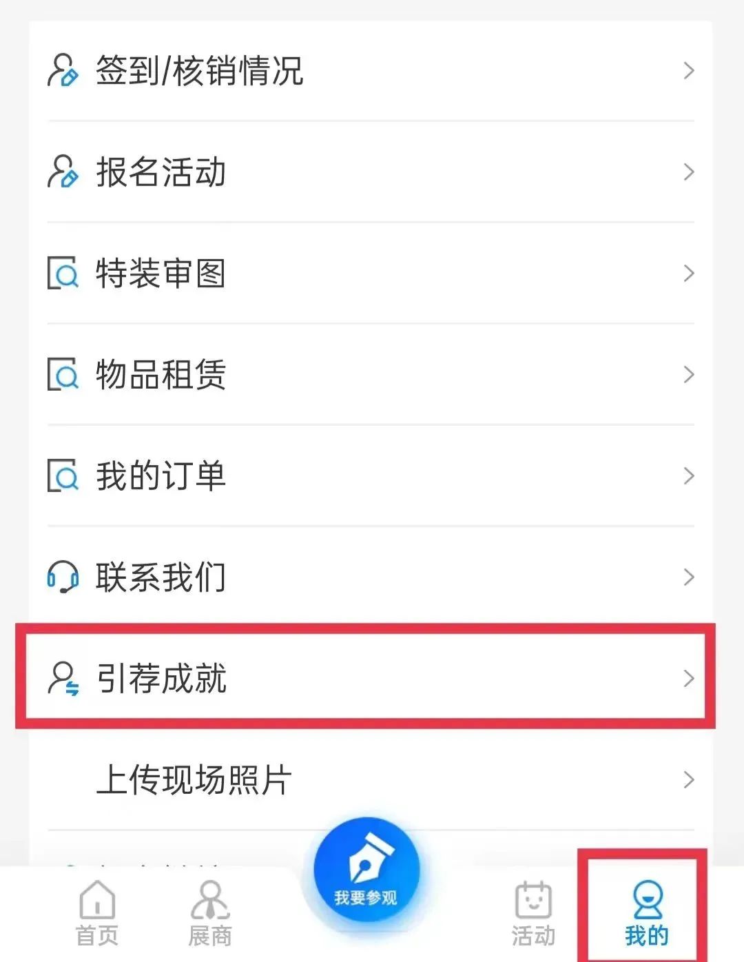 第五步:进入【美食工业博览会】小程序→我的→引荐成就→即可查看已邀请人员名单及人数