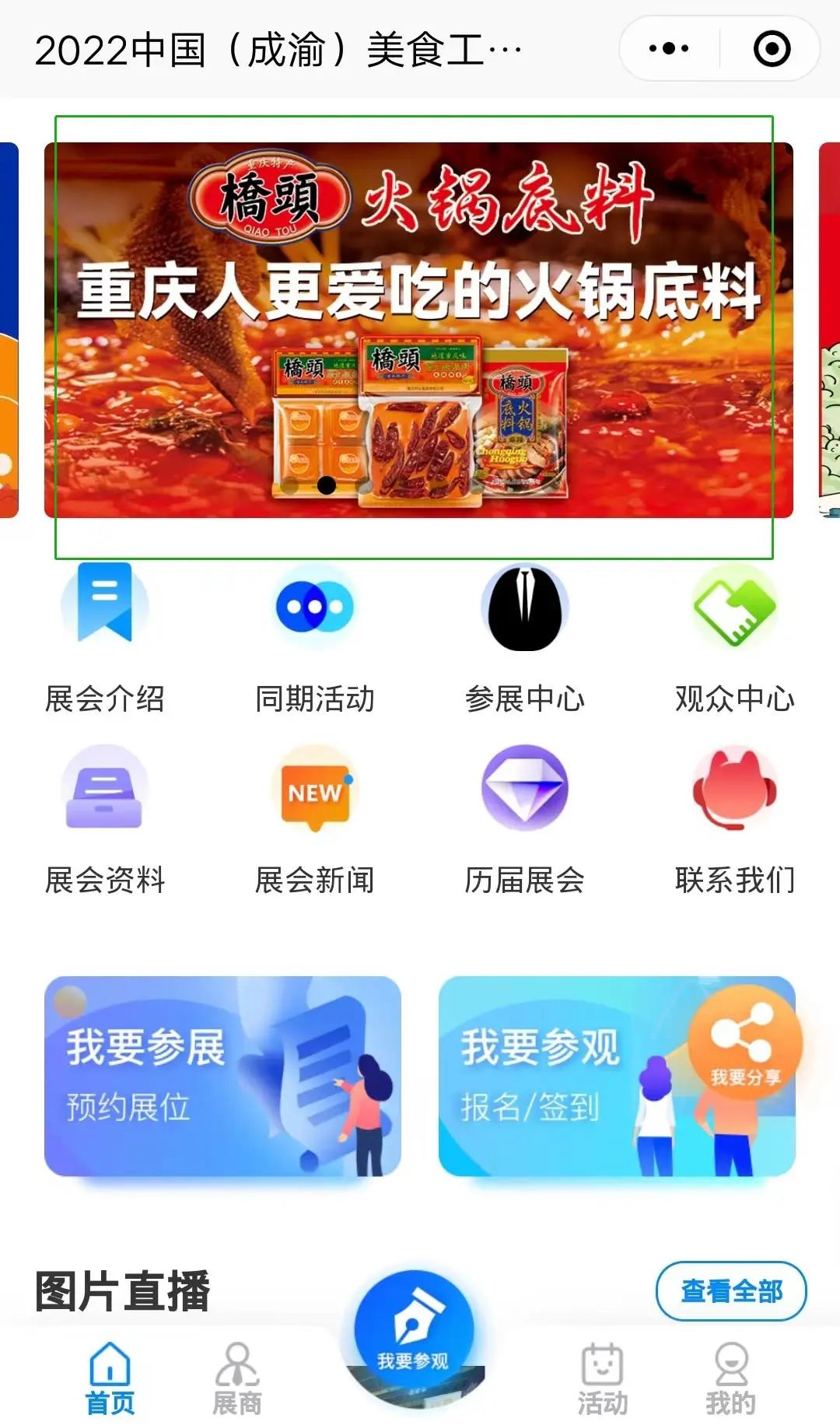 ①《美食工业博览会》小程序观众登记/首页轮播/展会概况页面等广告位1个(排名优选)