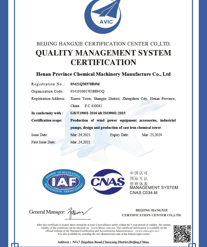 河南省化工机械制造有限公司是生产风力发电及化工机械设备的创新型企业。公司始建于1996年,占地面积6.6万平方米其中建筑面积3.5万平方米,年生产能力2万吨,年产值2.6亿元,固定资产5805万元,注册资金7000万元主要产品有耐低温冲击球墨铸铁风力发电设备及备件、化工铸铁塔,各种大型铸铁件等。公司先后被评为全国“守合同.重信用”企业 河南省“质量信得过”荣誉单位:2002年通过IS09001国际质量体系认证:公司拥有自营进出口权。