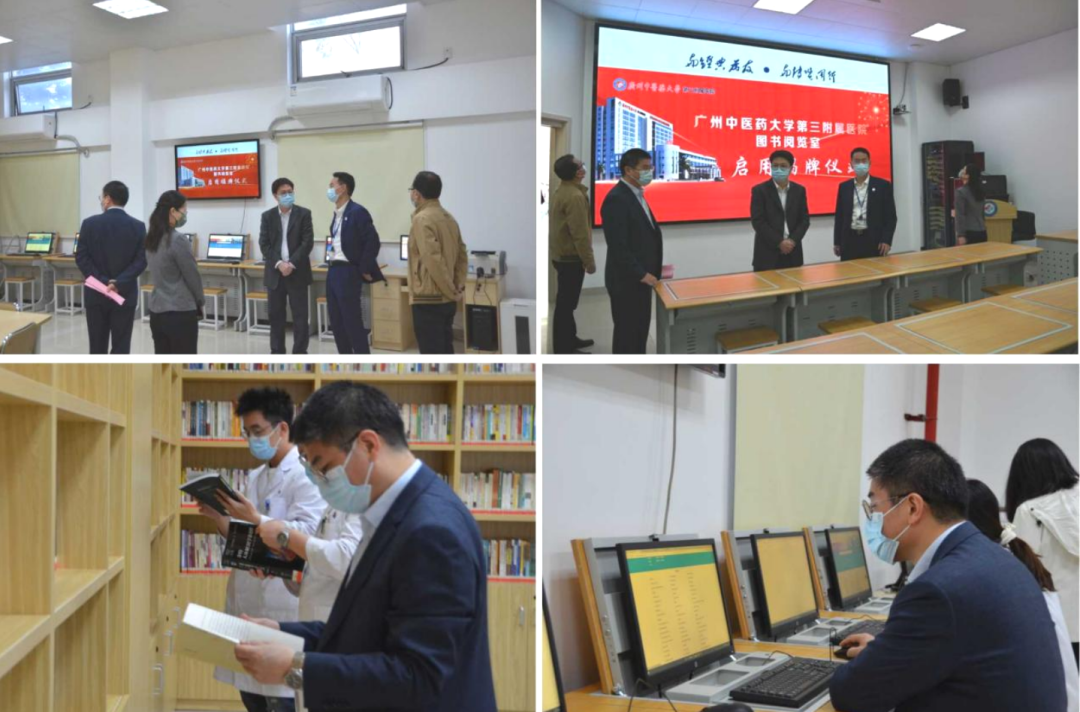 揭牌仪式后,潘伟增馆长、林兴栋院长与师生员工实地参观和了解图书阅览室及电教室的基本情况,宋盛青副院长查阅图书种类并亲自操作电脑阅览文献,感受医院日益浓厚的学习及科研氛围。