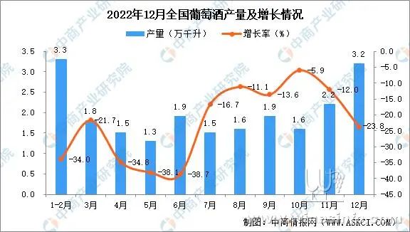 2022年12月全国葡萄酒增长情况: