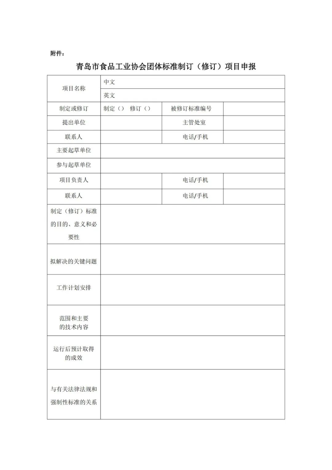 附件:青岛市食品工业协会团体标准制订(修订)项目申报