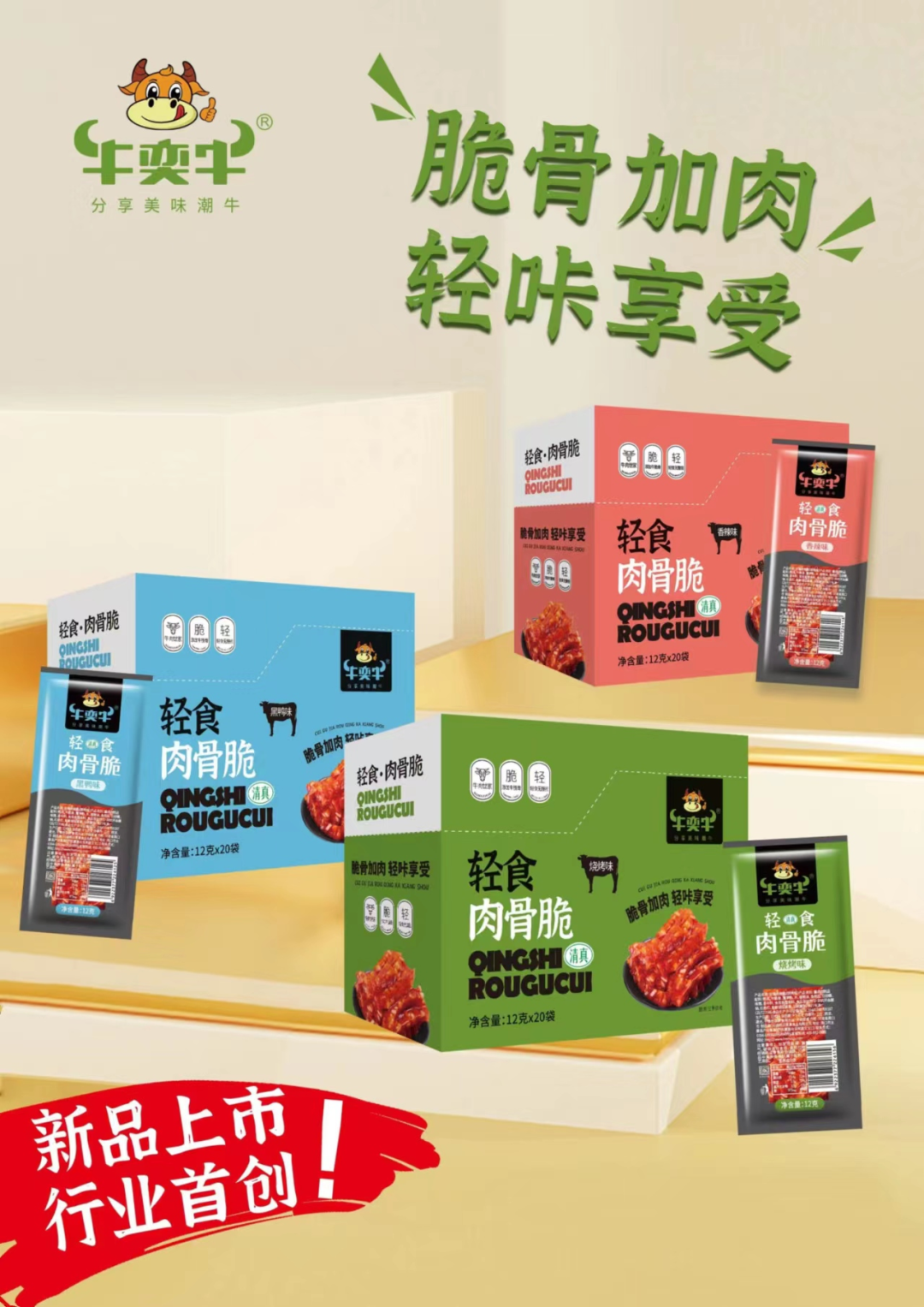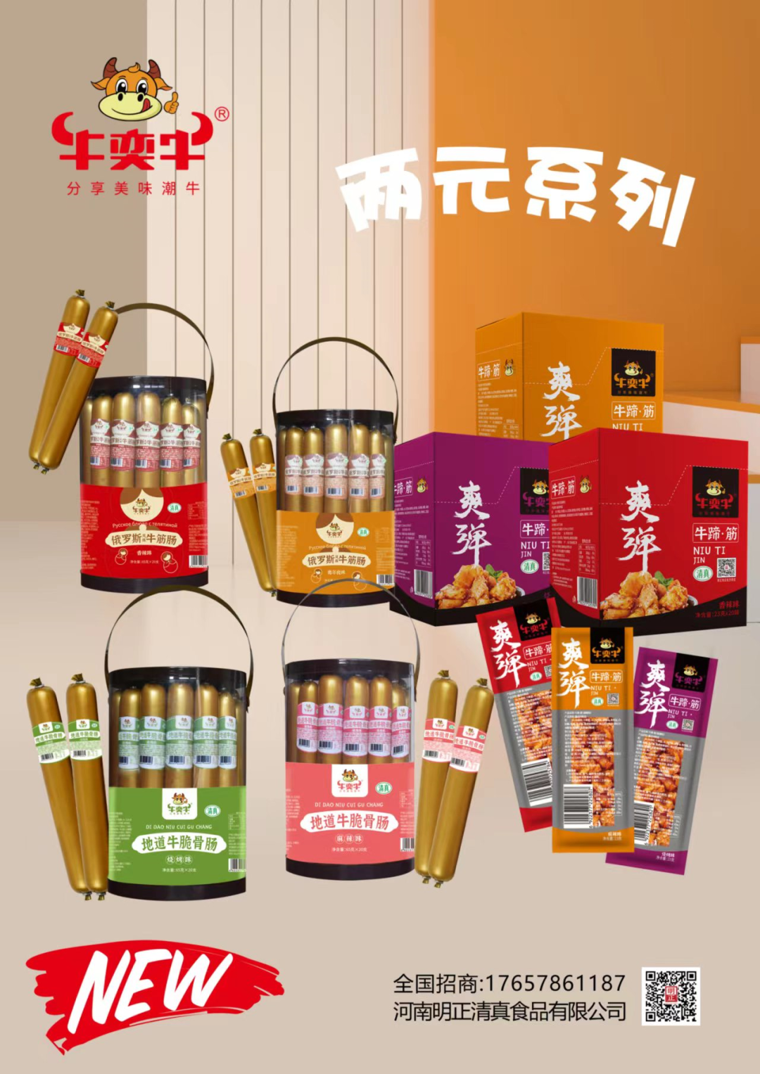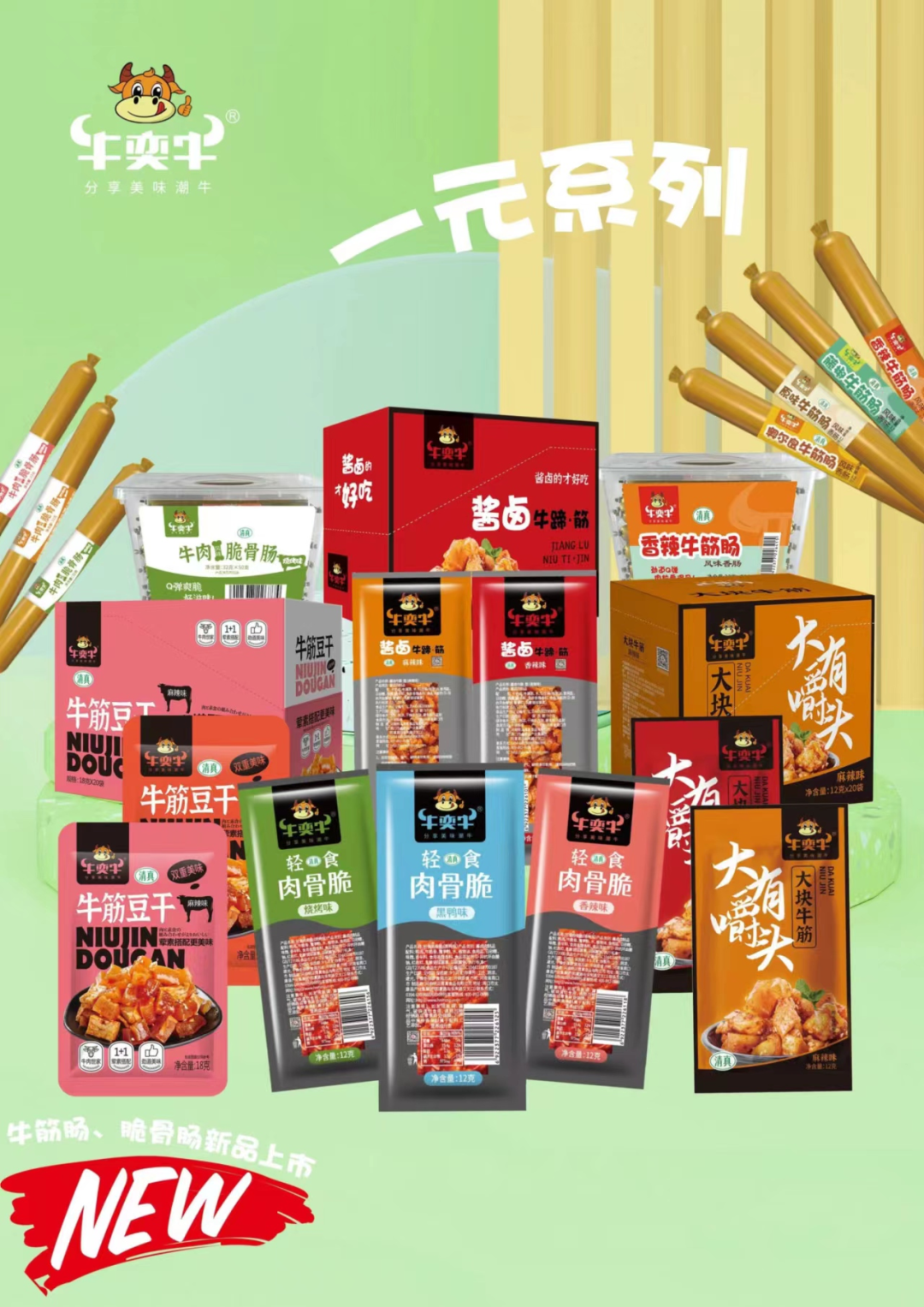 1、清真牛奕牛:1-2元盒装系列(牛蹄筋,牛筋肠,牛脆骨肠,牛筋豆干)