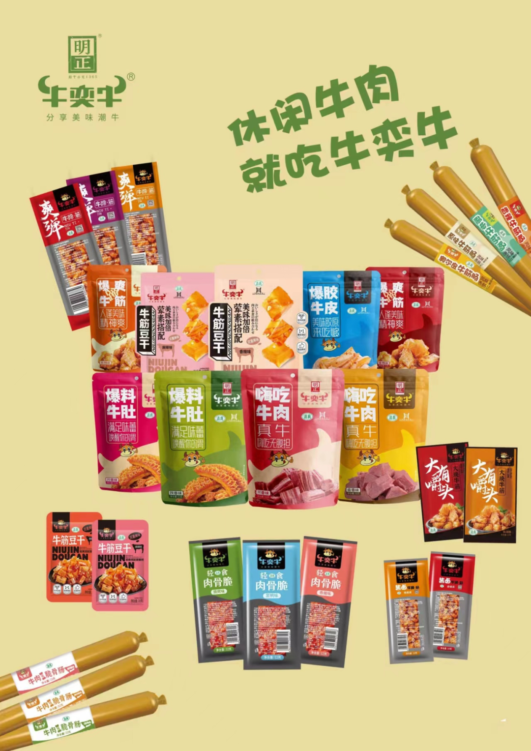 2、套袋系列 (嗨吃牛肉,爆料牛肚,爆爽牛筋,爆胶牛皮,牛筋豆干)