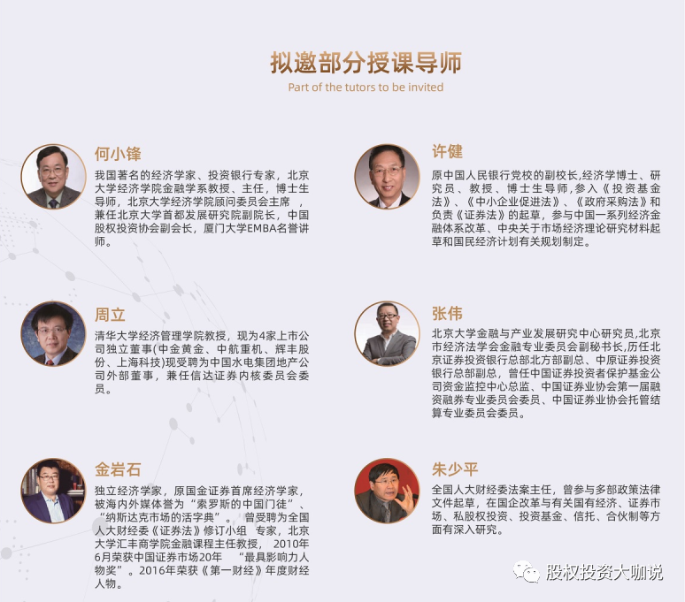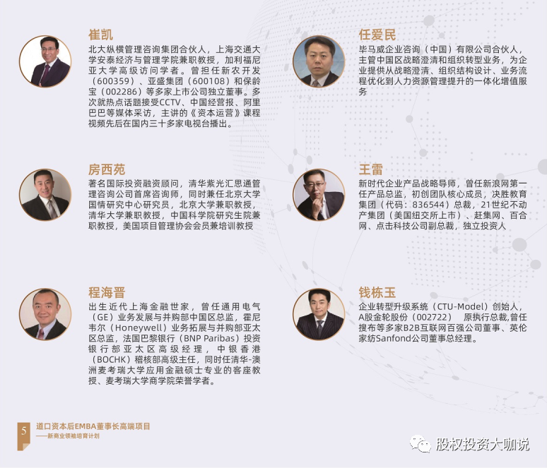 新商业领袖高端项目依托清华五道口资源,调研已毕业十七期投融资班企业家校友,再度对“资本后EMBA”课程迭代升级。课程着重关注资本赋能和商业创新两大核心主题,邀请众多顶尖金融学教授、权威政策制定者和资本业界大咖导师,共同打造全方位浸润式学习体验,赋能中国企业实现价值再造,取势领跑未来。