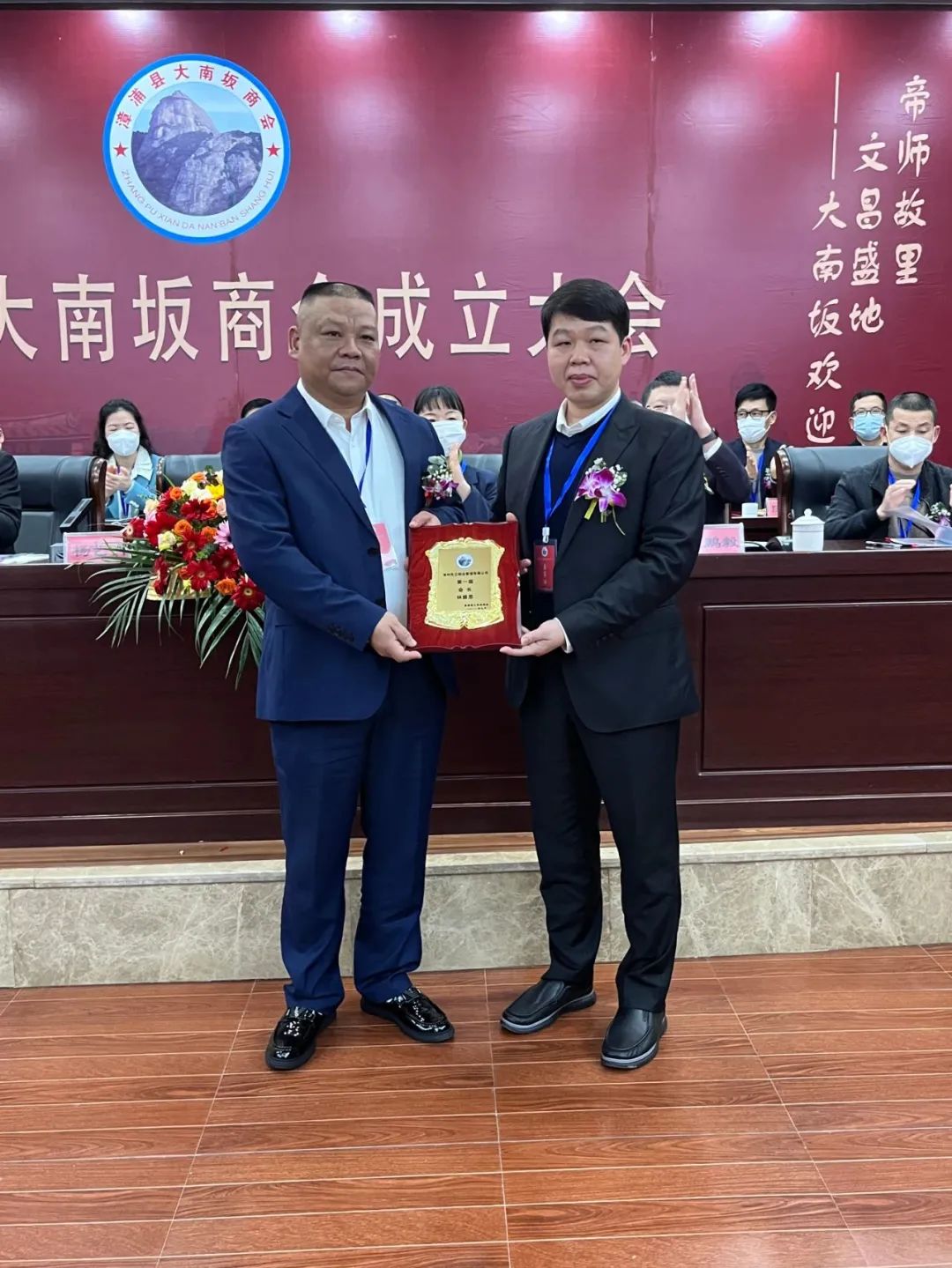 县委常委、县委统战部部长杨艺明,县政协副主席蓝小红为大南坂商会揭牌
