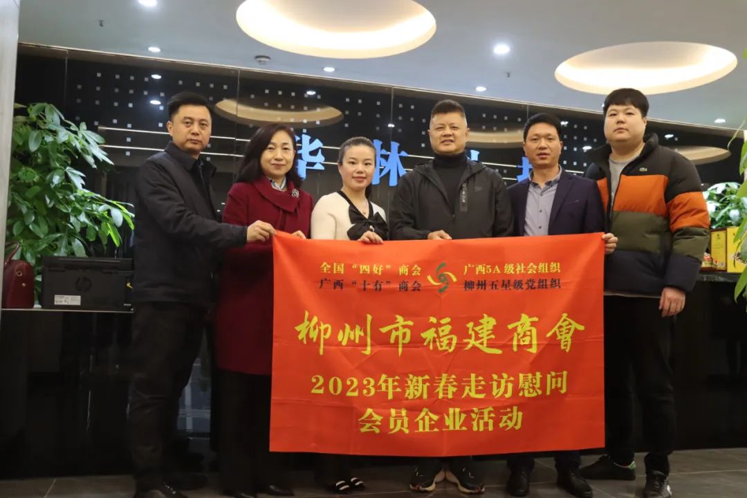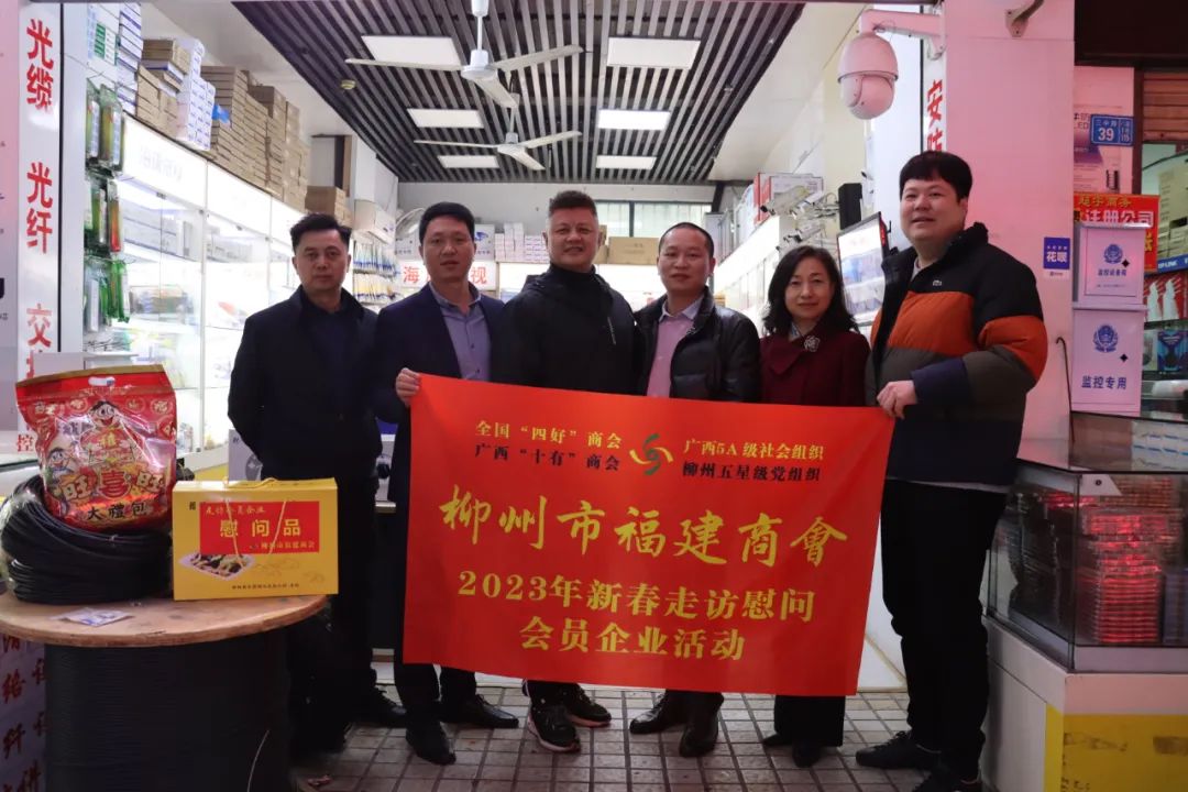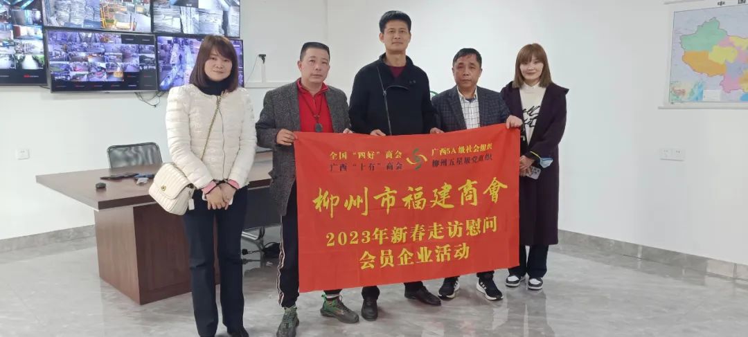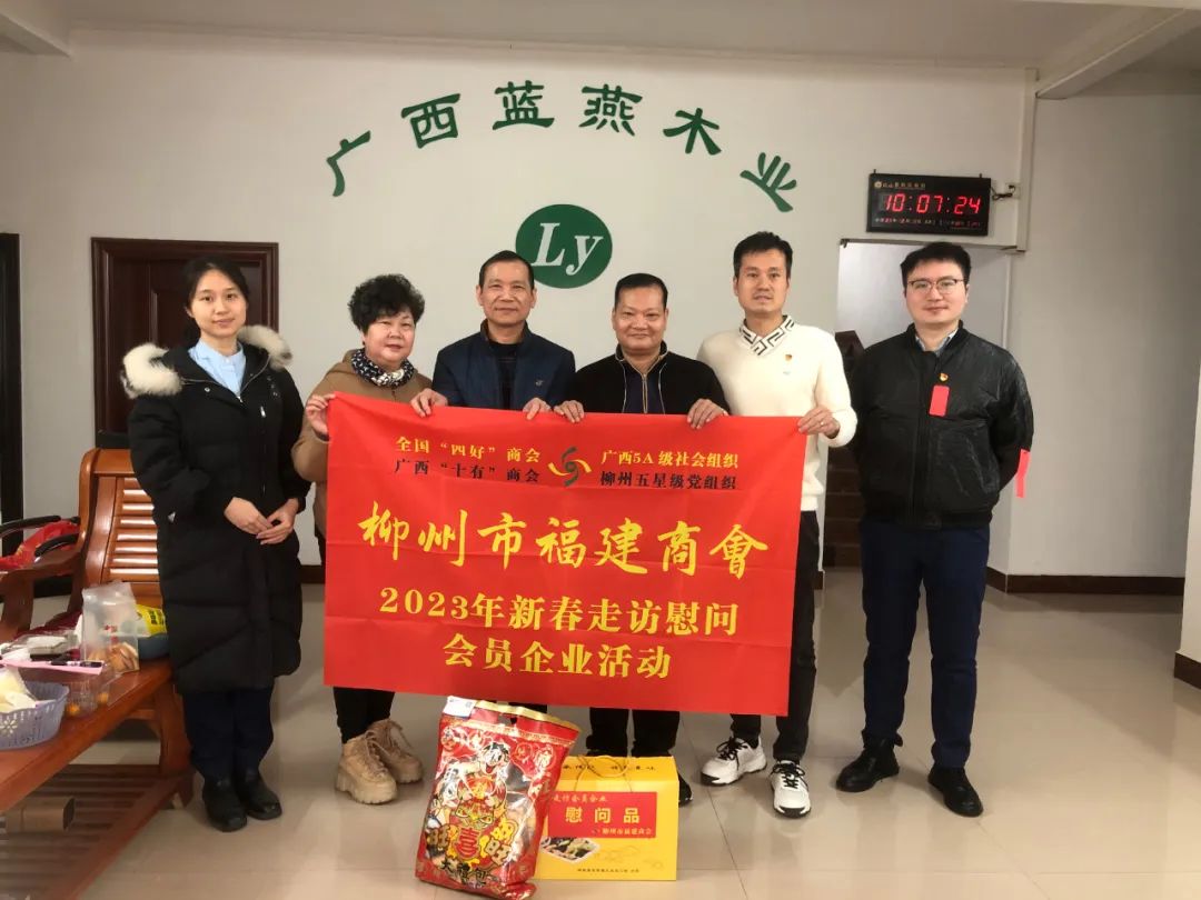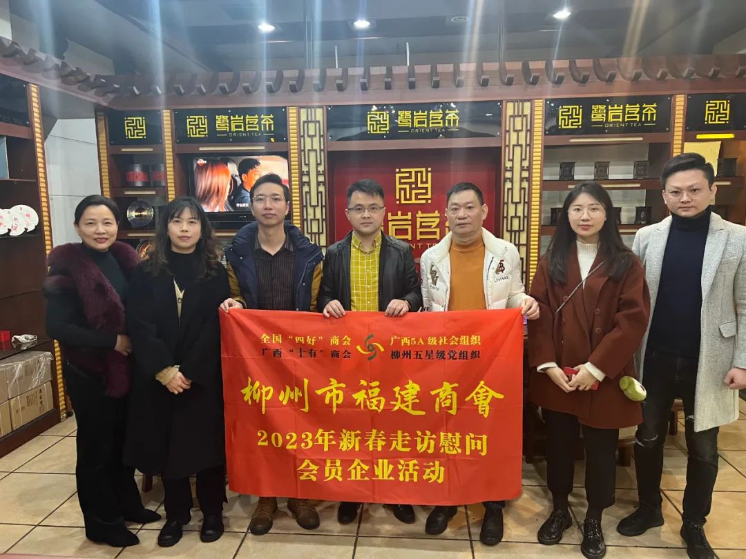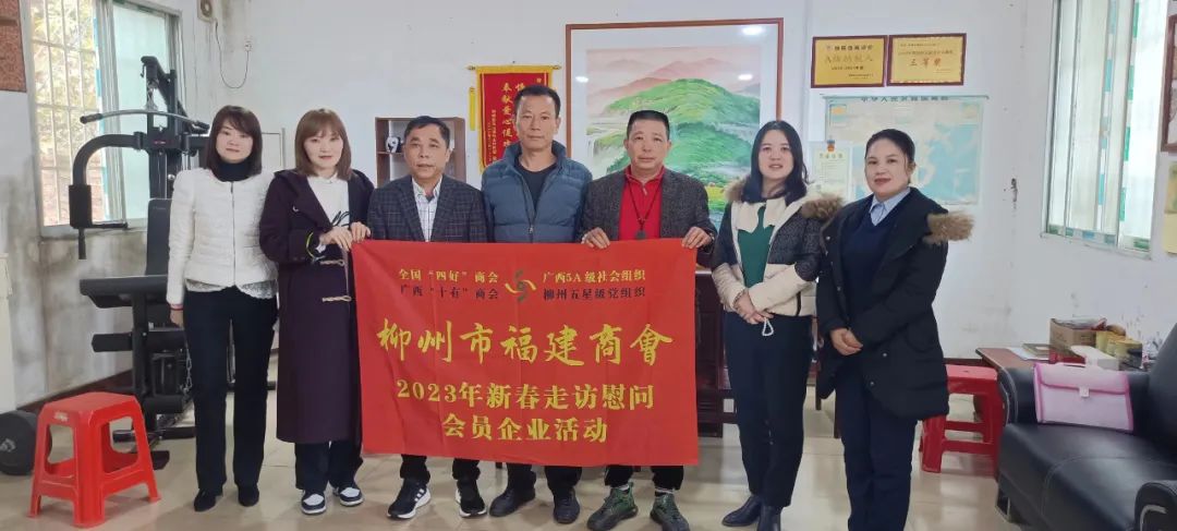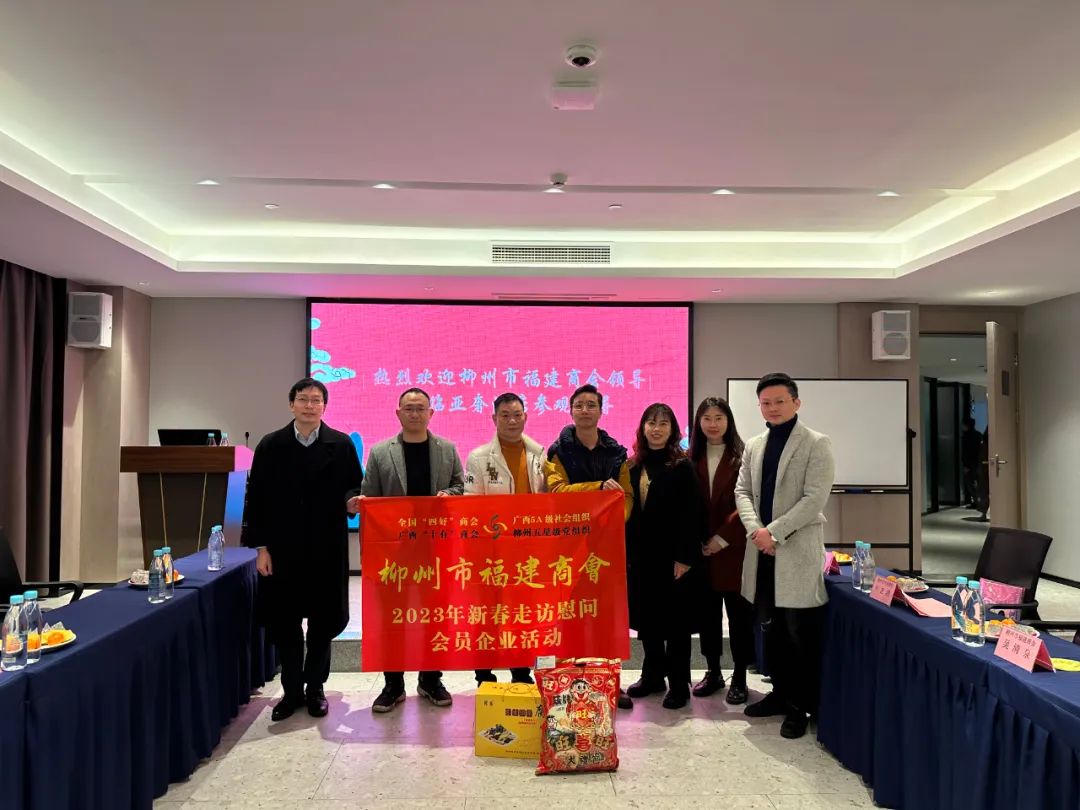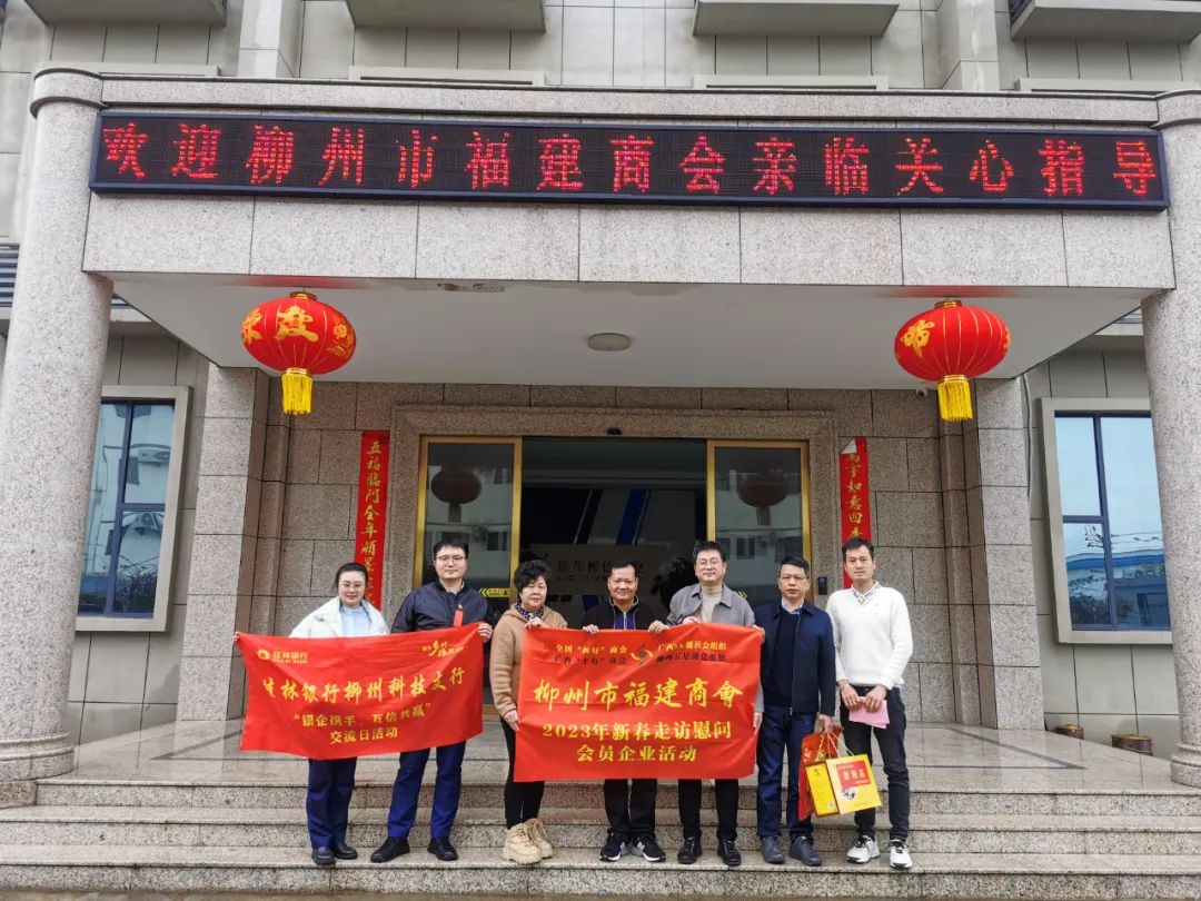 2023年2月8日,今年立春后的第五天,柳州城内外依然寒风凛冽,细雨绵绵,自然天气没有给人们带来一丝春天的气息。然而,在柳州市福建商会,上下却荡漾着春天的温暖。因为当天一大早,商会会长黄志荣、常务执行会长苏报谷、监事长郭炳林、党支部书记陈玉坤、第一书记梁西金、执行会长周庄顶、陈明凉、游品俤、总顾问傅志良等领导就带领商会34名副会长以上领导和柳州兴业银行、柳州桂林银行有关领导13人,共47人,穿上羽绒服、打着雨伞,带着旺旺大礼包和腐竹等慰问品,兵分8路,奔赴柳州市四面八方走访慰问会员企业,给会员送去了关爱和温暖,受到了会员们的热烈欢迎。本文开头的几句打油诗,正是当天商会领导新春走访会员企业活动的生动写照。