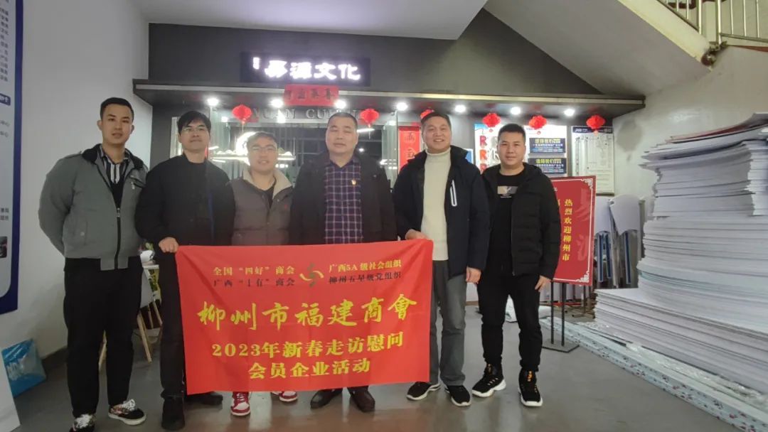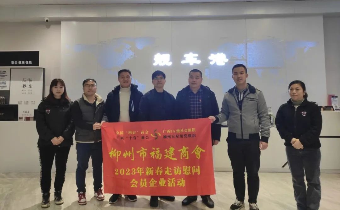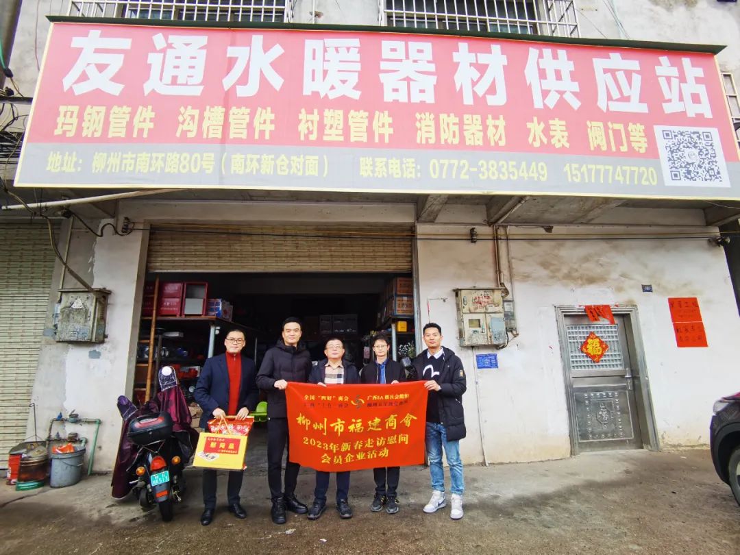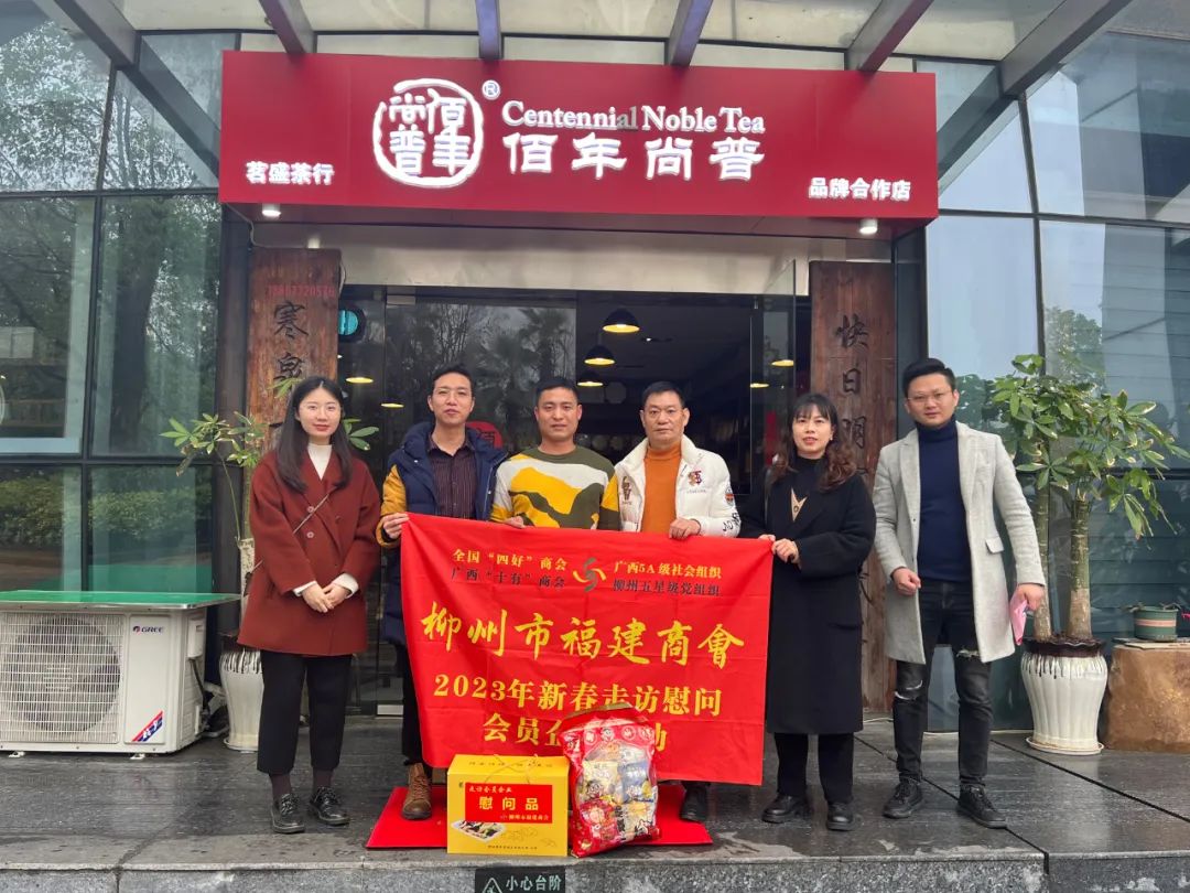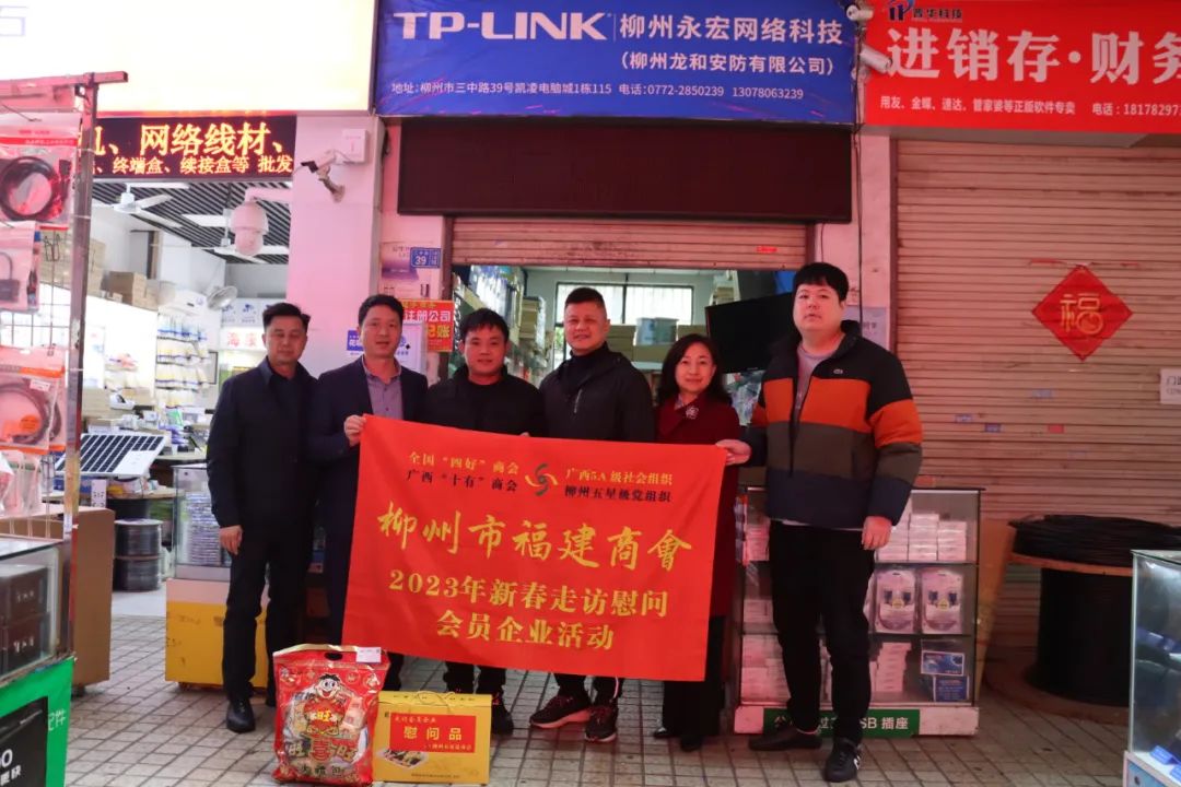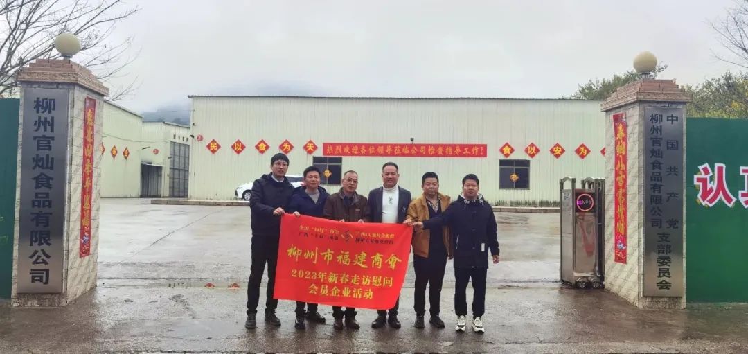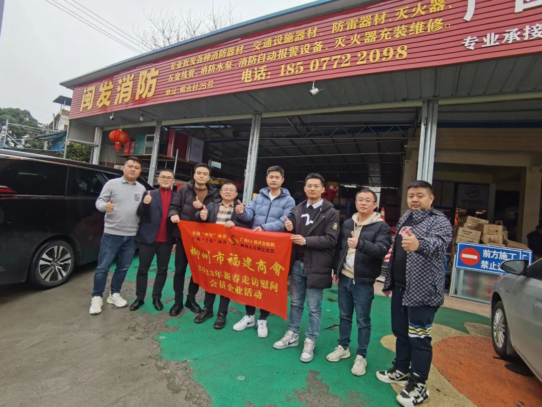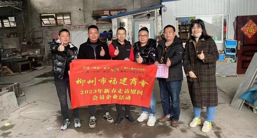 2023年2月8日,今年立春后的第五天,柳州城内外依然寒风凛冽,细雨绵绵,自然天气没有给人们带来一丝春天的气息。然而,在柳州市福建商会,上下却荡漾着春天的温暖。因为当天一大早,商会会长黄志荣、常务执行会长苏报谷、监事长郭炳林、党支部书记陈玉坤、第一书记梁西金、执行会长周庄顶、陈明凉、游品俤、总顾问傅志良等领导就带领商会34名副会长以上领导和柳州兴业银行、柳州桂林银行有关领导13人,共47人,穿上羽绒服、打着雨伞,带着旺旺大礼包和腐竹等慰问品,兵分8路,奔赴柳州市四面八方走访慰问会员企业,给会员送去了关爱和温暖,受到了会员们的热烈欢迎。本文开头的几句打油诗,正是当天商会领导新春走访会员企业活动的生动写照。