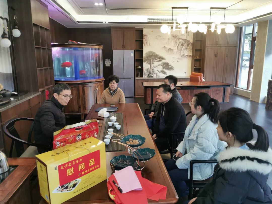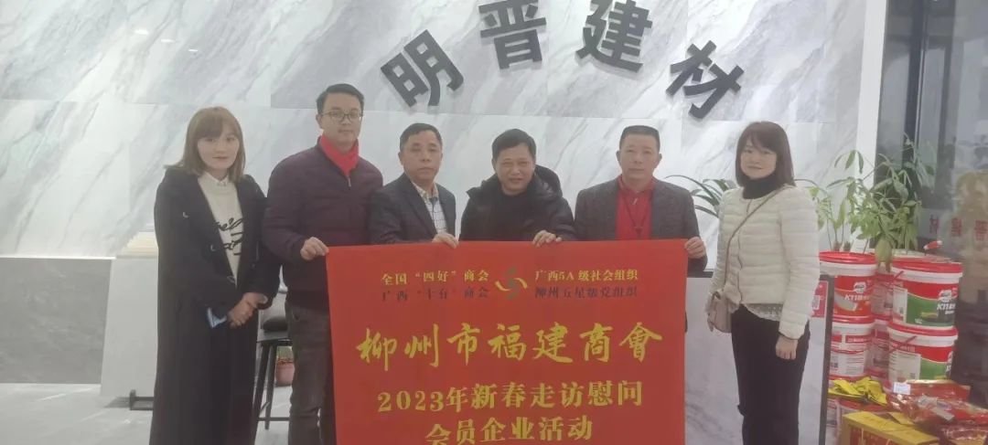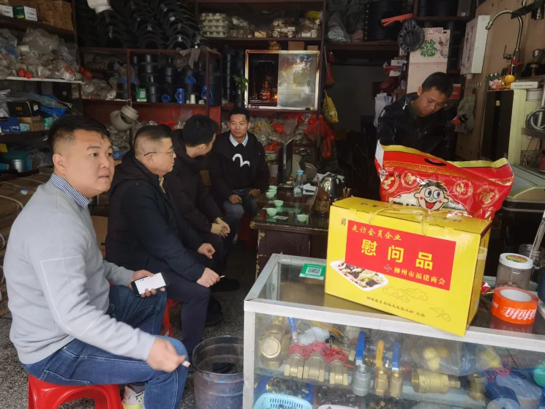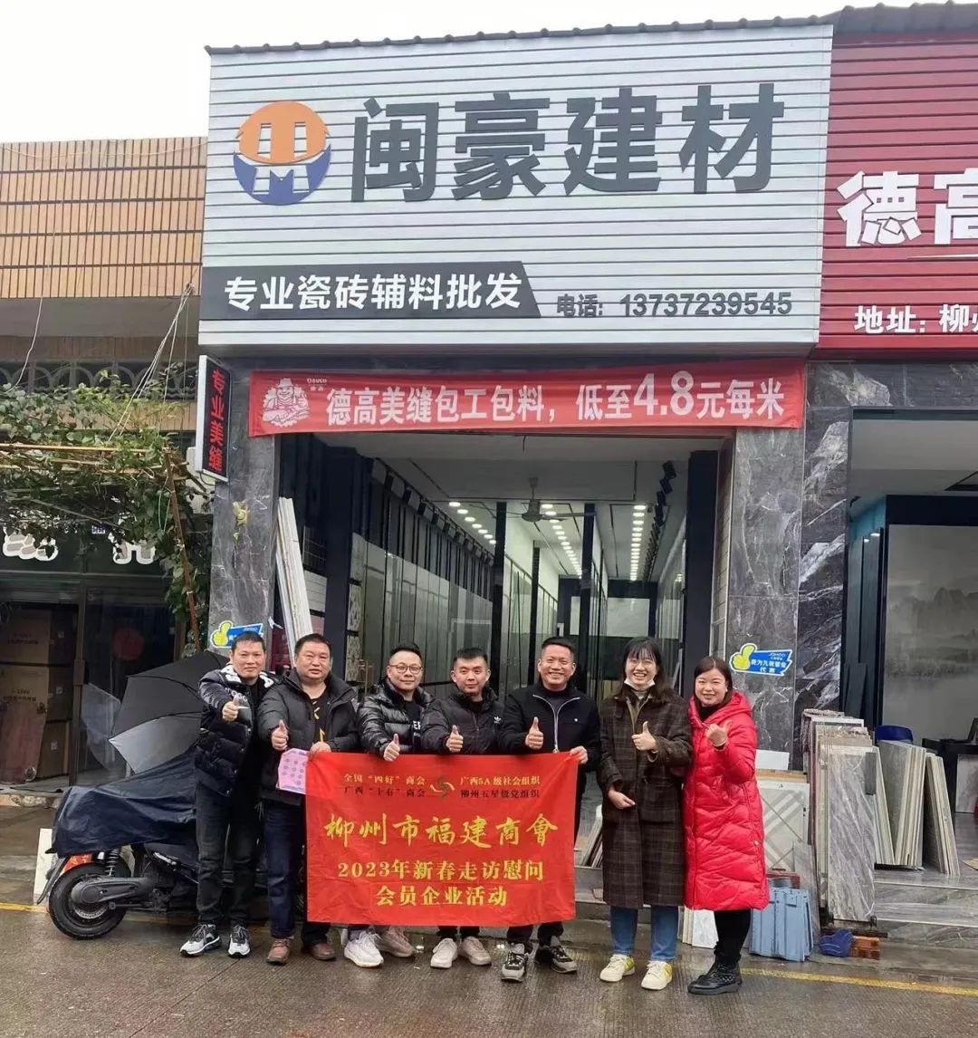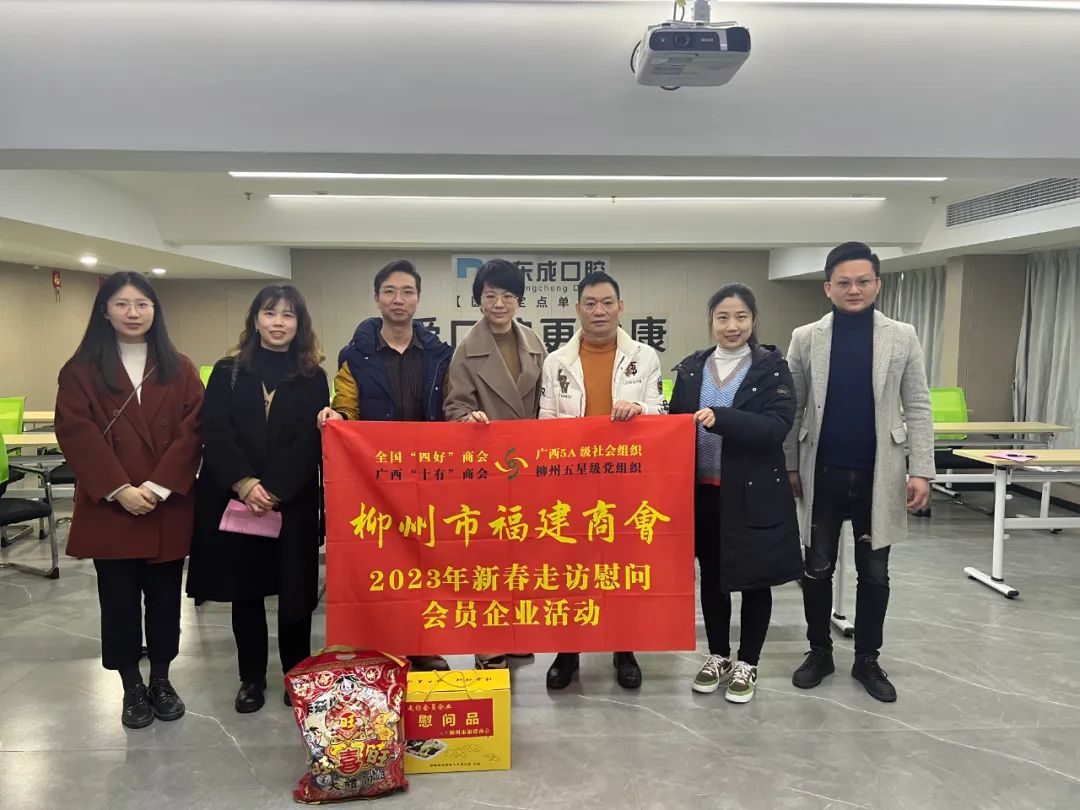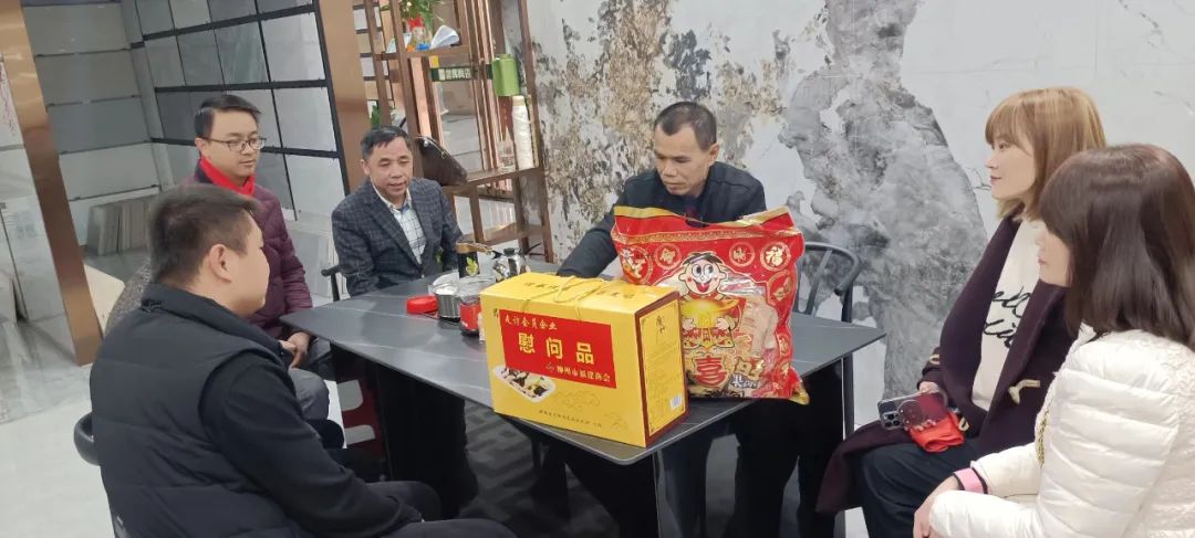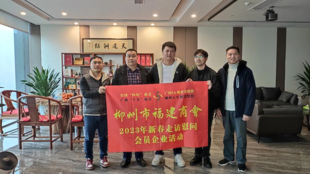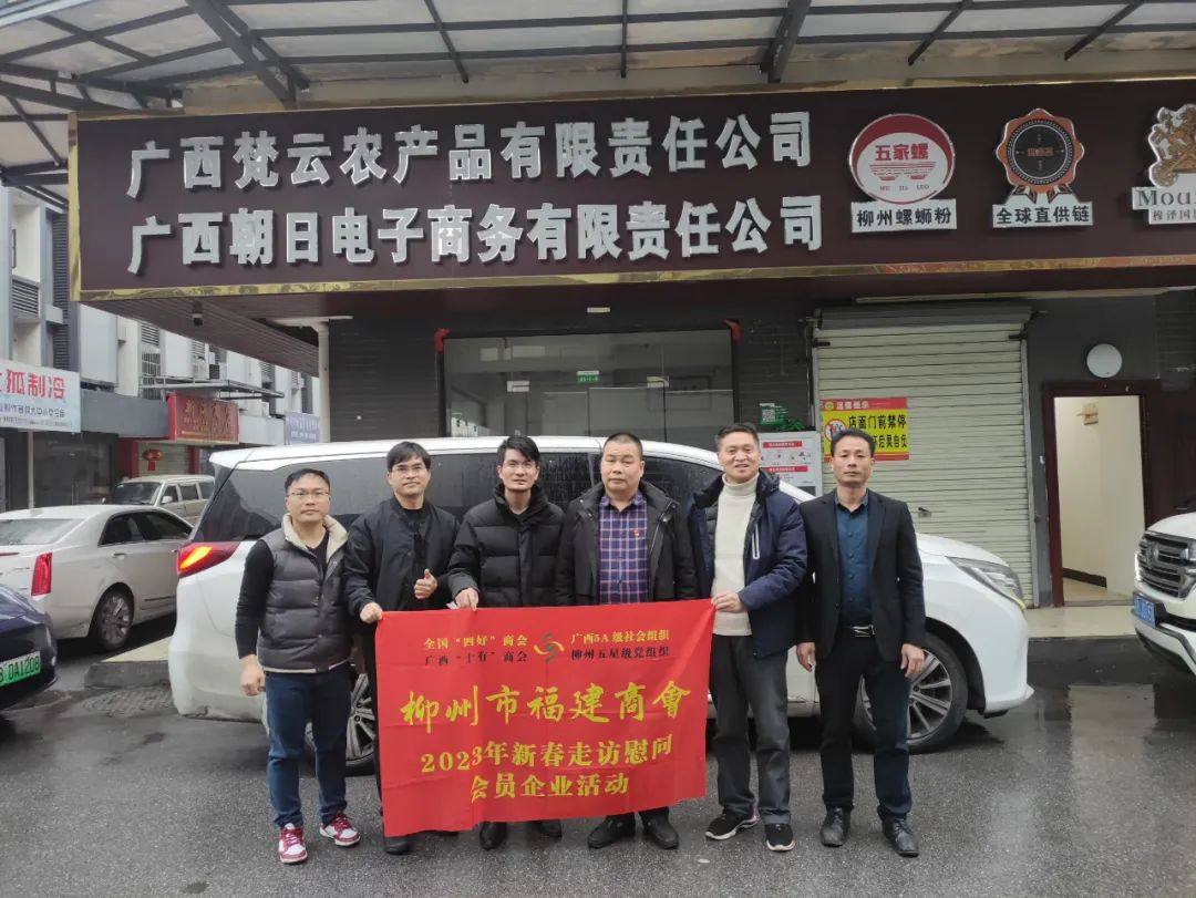 2023年2月8日,今年立春后的第五天,柳州城内外依然寒风凛冽,细雨绵绵,自然天气没有给人们带来一丝春天的气息。然而,在柳州市福建商会,上下却荡漾着春天的温暖。因为当天一大早,商会会长黄志荣、常务执行会长苏报谷、监事长郭炳林、党支部书记陈玉坤、第一书记梁西金、执行会长周庄顶、陈明凉、游品俤、总顾问傅志良等领导就带领商会34名副会长以上领导和柳州兴业银行、柳州桂林银行有关领导13人,共47人,穿上羽绒服、打着雨伞,带着旺旺大礼包和腐竹等慰问品,兵分8路,奔赴柳州市四面八方走访慰问会员企业,给会员送去了关爱和温暖,受到了会员们的热烈欢迎。本文开头的几句打油诗,正是当天商会领导新春走访会员企业活动的生动写照。