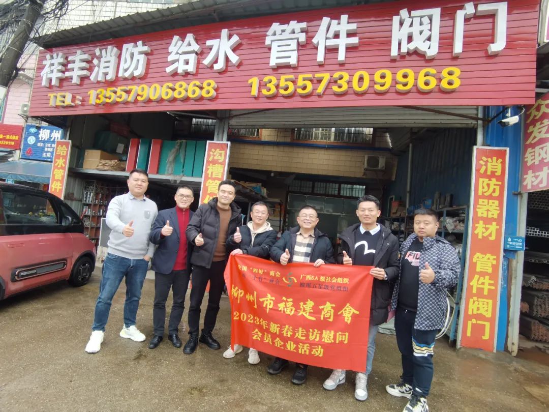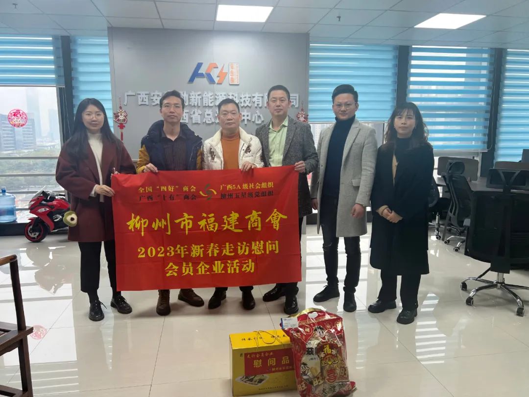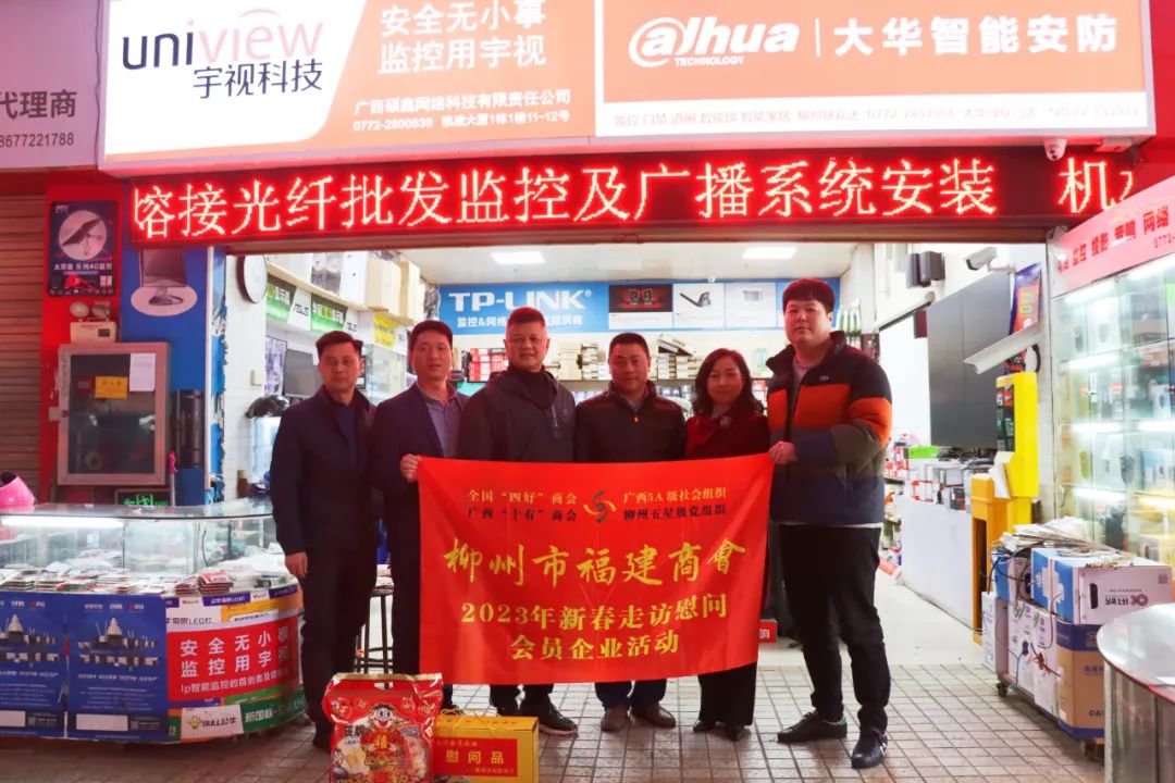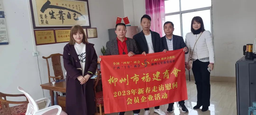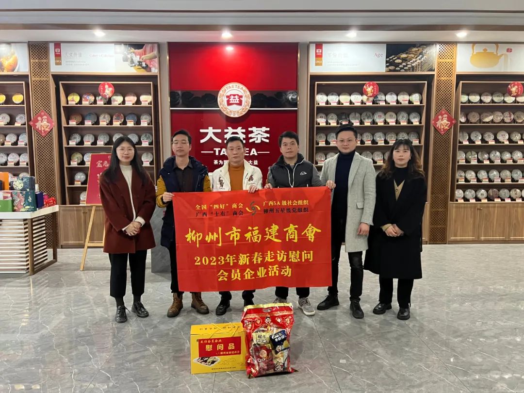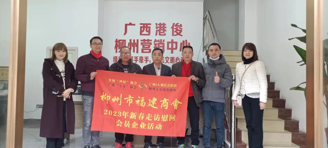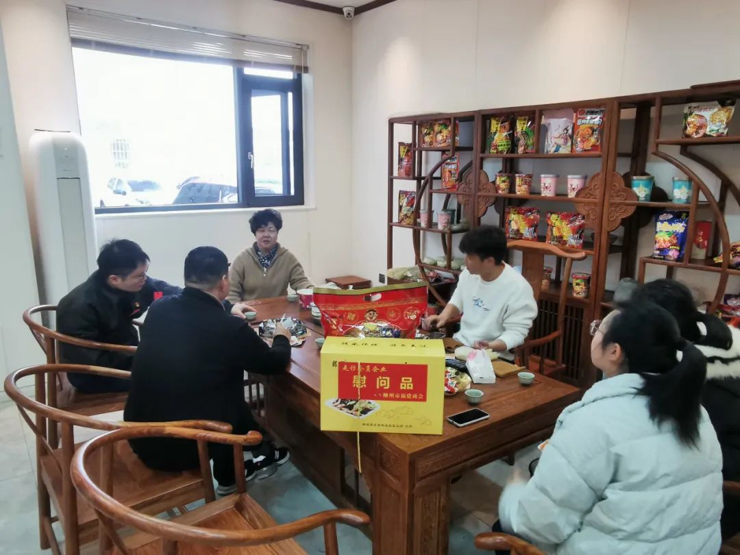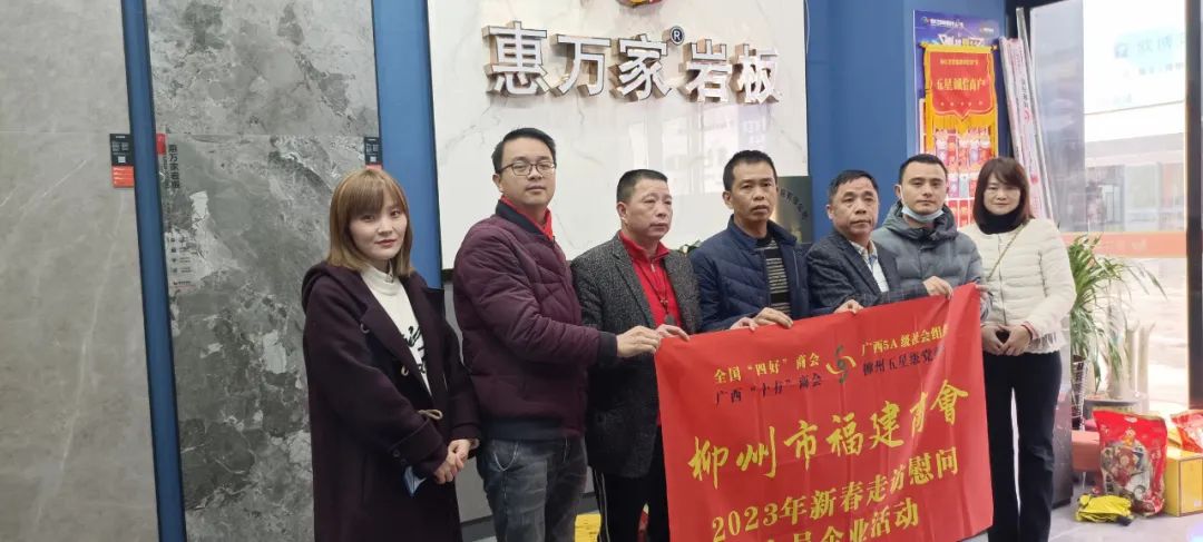 2023年2月8日,今年立春后的第五天,柳州城内外依然寒风凛冽,细雨绵绵,自然天气没有给人们带来一丝春天的气息。然而,在柳州市福建商会,上下却荡漾着春天的温暖。因为当天一大早,商会会长黄志荣、常务执行会长苏报谷、监事长郭炳林、党支部书记陈玉坤、第一书记梁西金、执行会长周庄顶、陈明凉、游品俤、总顾问傅志良等领导就带领商会34名副会长以上领导和柳州兴业银行、柳州桂林银行有关领导13人,共47人,穿上羽绒服、打着雨伞,带着旺旺大礼包和腐竹等慰问品,兵分8路,奔赴柳州市四面八方走访慰问会员企业,给会员送去了关爱和温暖,受到了会员们的热烈欢迎。本文开头的几句打油诗,正是当天商会领导新春走访会员企业活动的生动写照。