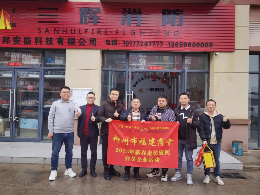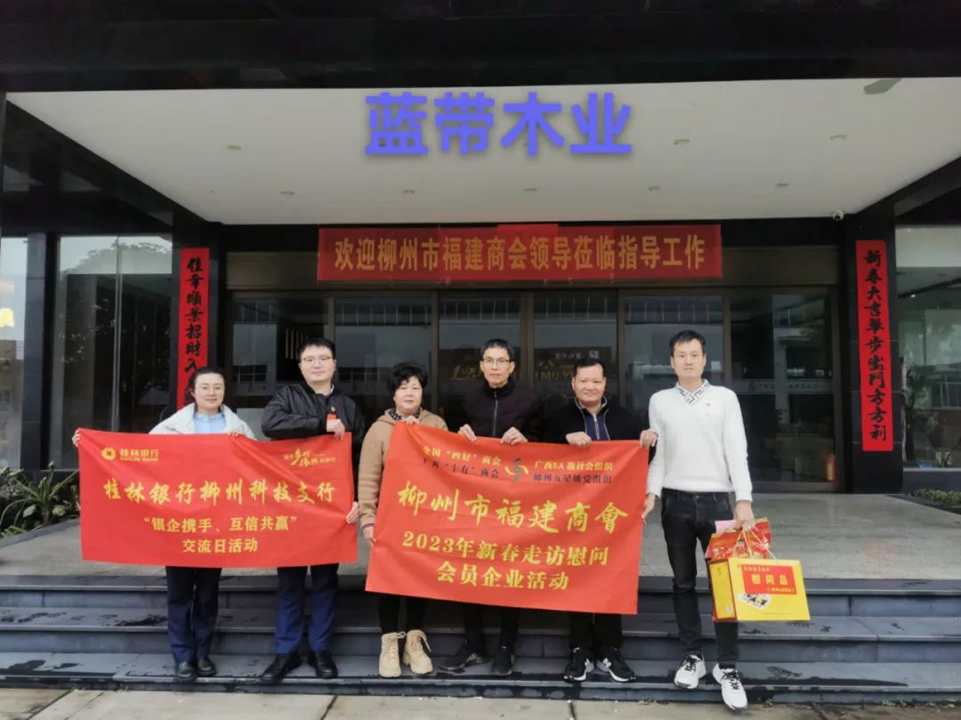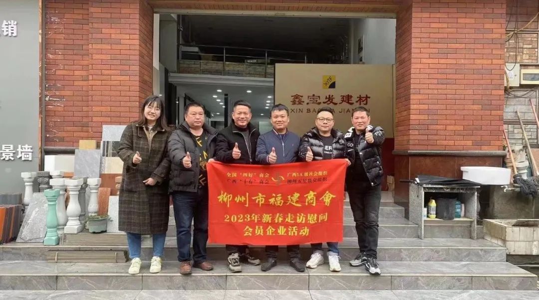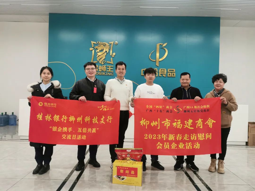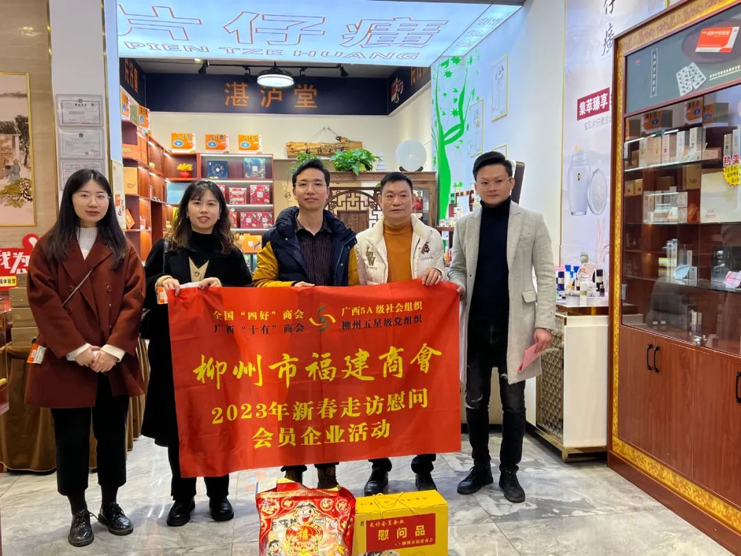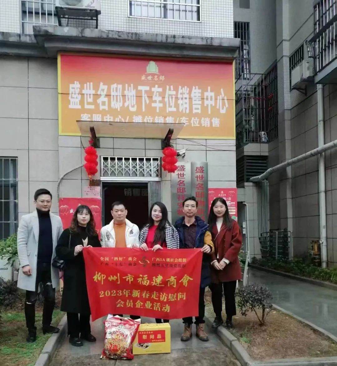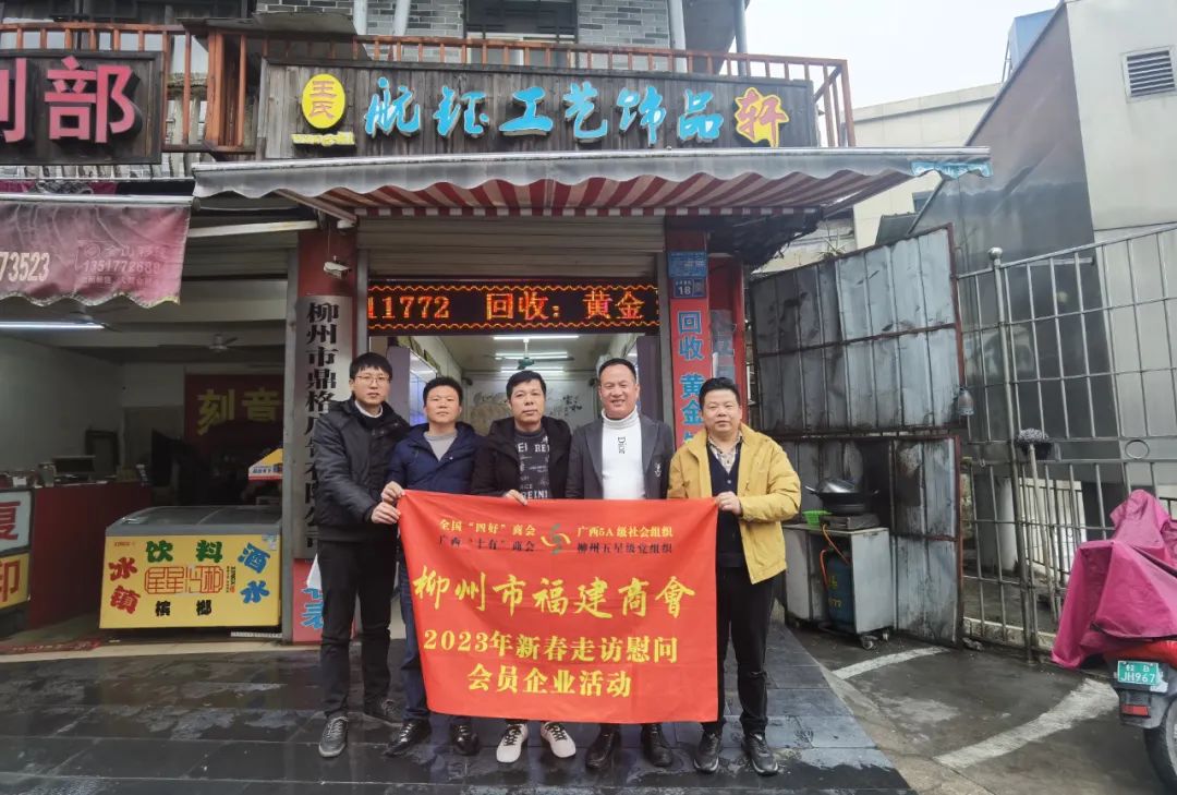 2023年2月8日,今年立春后的第五天,柳州城内外依然寒风凛冽,细雨绵绵,自然天气没有给人们带来一丝春天的气息。然而,在柳州市福建商会,上下却荡漾着春天的温暖。因为当天一大早,商会会长黄志荣、常务执行会长苏报谷、监事长郭炳林、党支部书记陈玉坤、第一书记梁西金、执行会长周庄顶、陈明凉、游品俤、总顾问傅志良等领导就带领商会34名副会长以上领导和柳州兴业银行、柳州桂林银行有关领导13人,共47人,穿上羽绒服、打着雨伞,带着旺旺大礼包和腐竹等慰问品,兵分8路,奔赴柳州市四面八方走访慰问会员企业,给会员送去了关爱和温暖,受到了会员们的热烈欢迎。本文开头的几句打油诗,正是当天商会领导新春走访会员企业活动的生动写照。