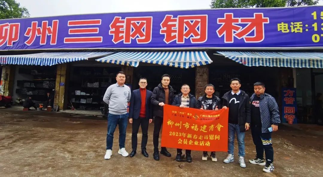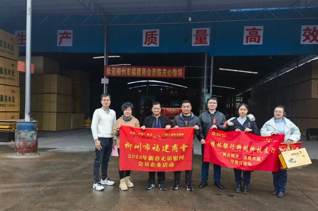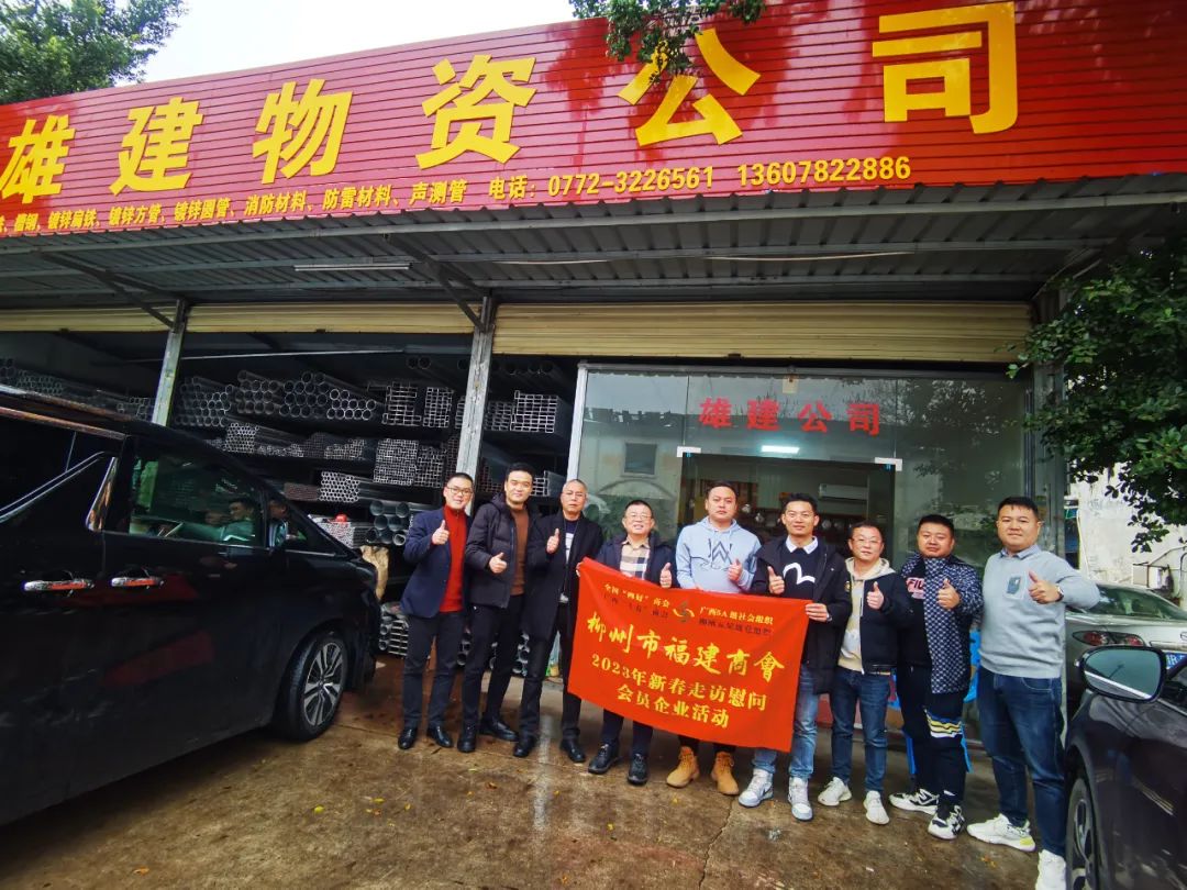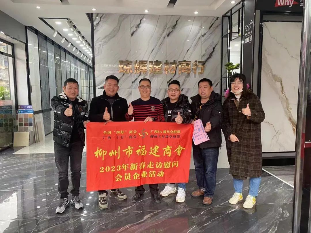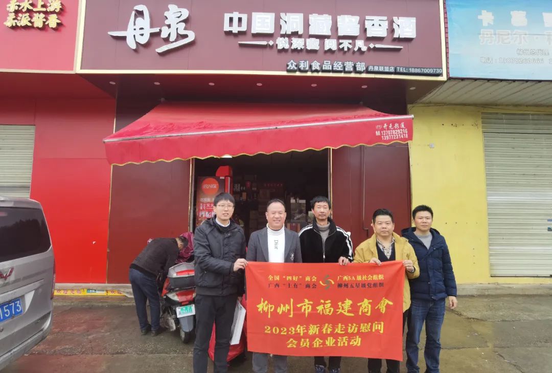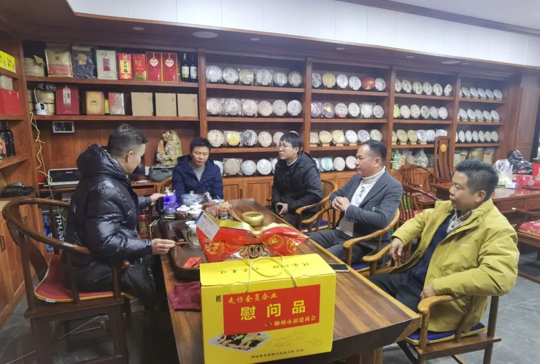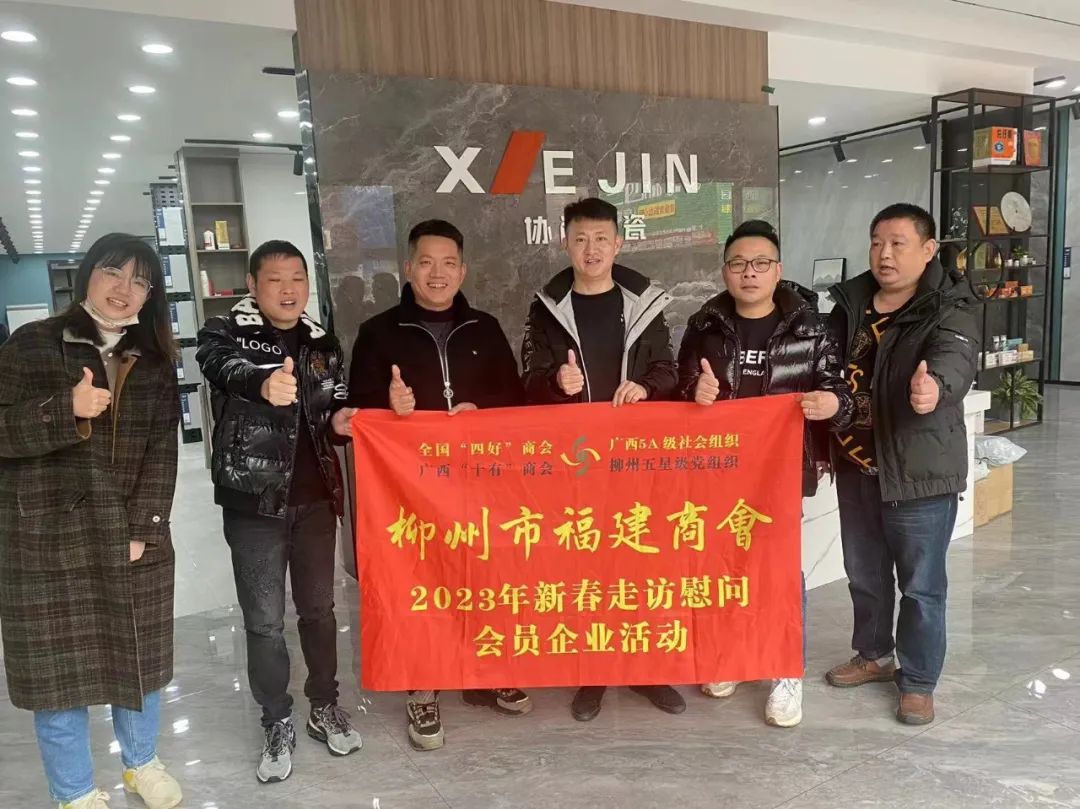 2023年2月8日,今年立春后的第五天,柳州城内外依然寒风凛冽,细雨绵绵,自然天气没有给人们带来一丝春天的气息。然而,在柳州市福建商会,上下却荡漾着春天的温暖。因为当天一大早,商会会长黄志荣、常务执行会长苏报谷、监事长郭炳林、党支部书记陈玉坤、第一书记梁西金、执行会长周庄顶、陈明凉、游品俤、总顾问傅志良等领导就带领商会34名副会长以上领导和柳州兴业银行、柳州桂林银行有关领导13人,共47人,穿上羽绒服、打着雨伞,带着旺旺大礼包和腐竹等慰问品,兵分8路,奔赴柳州市四面八方走访慰问会员企业,给会员送去了关爱和温暖,受到了会员们的热烈欢迎。本文开头的几句打油诗,正是当天商会领导新春走访会员企业活动的生动写照。