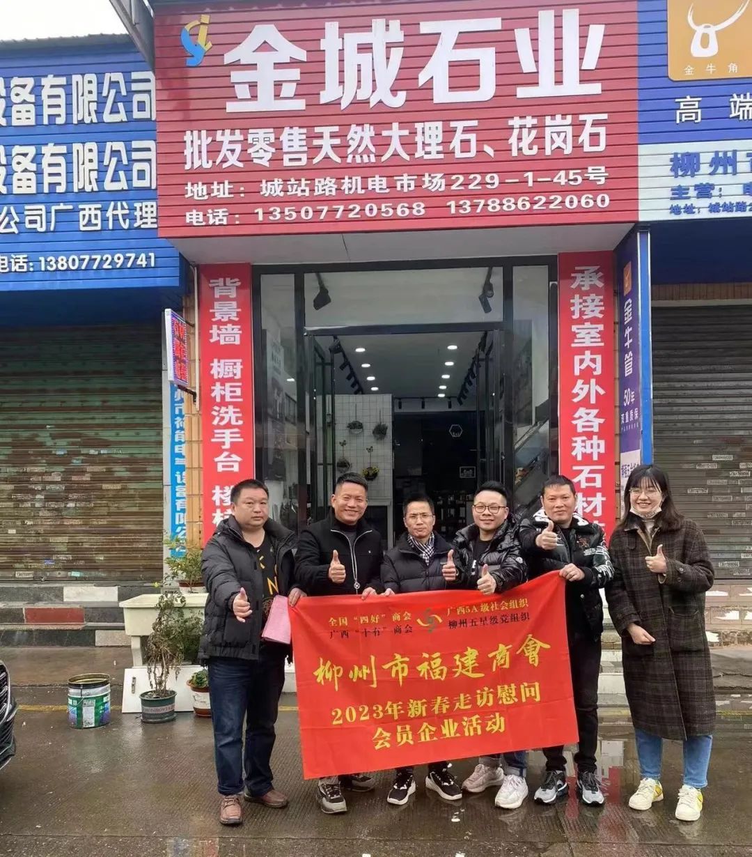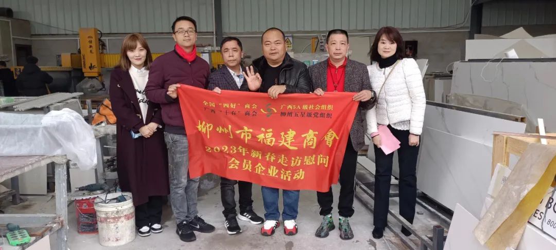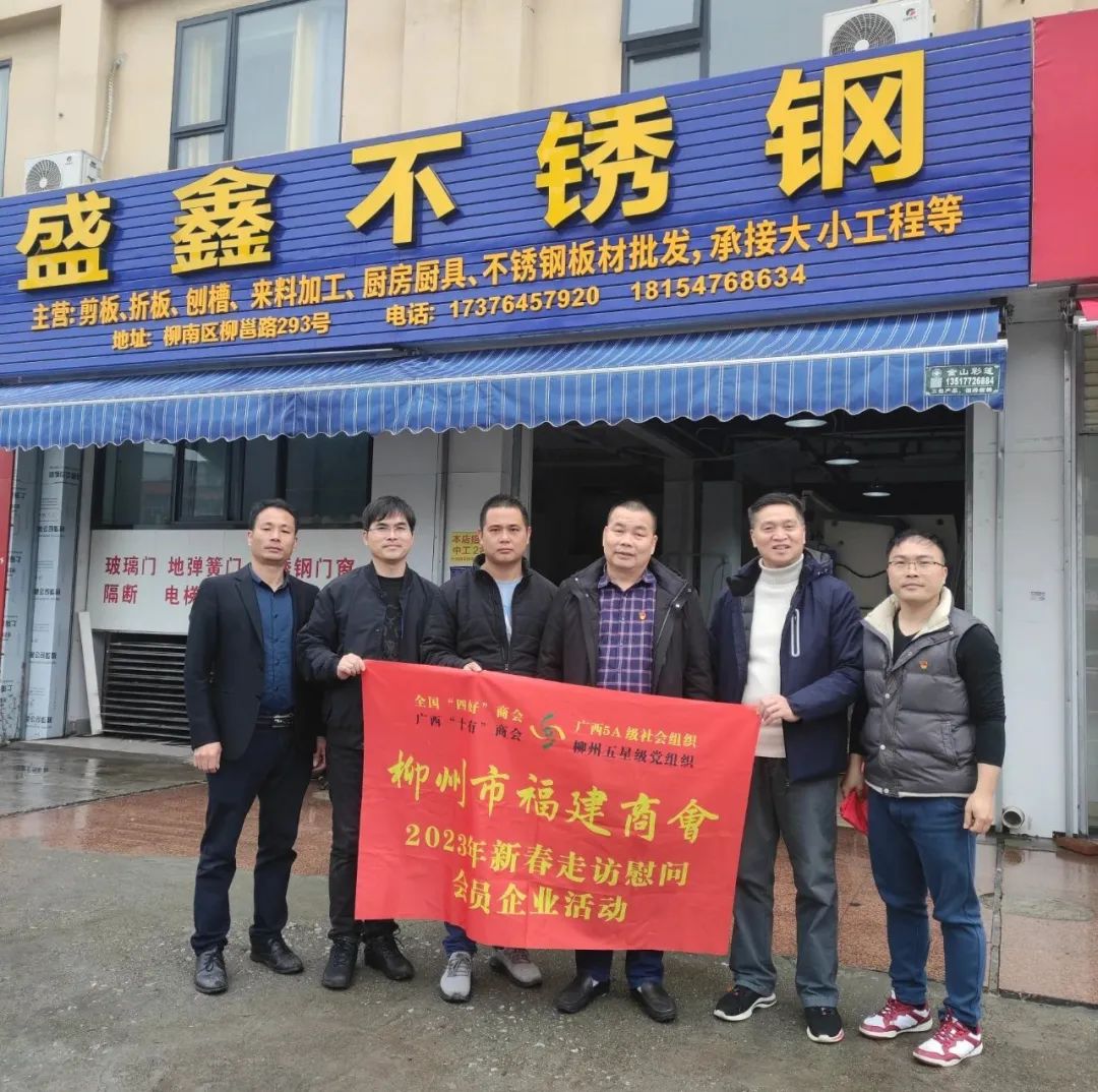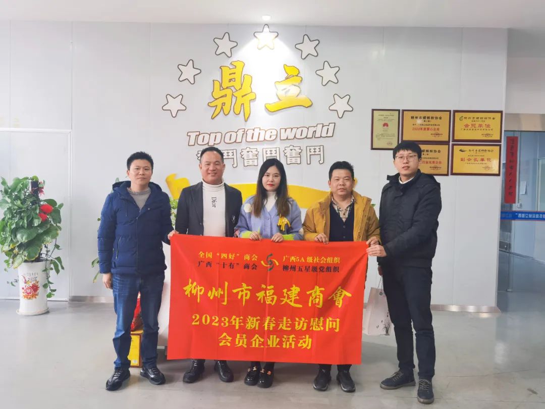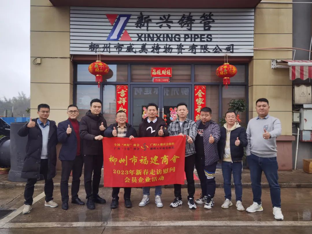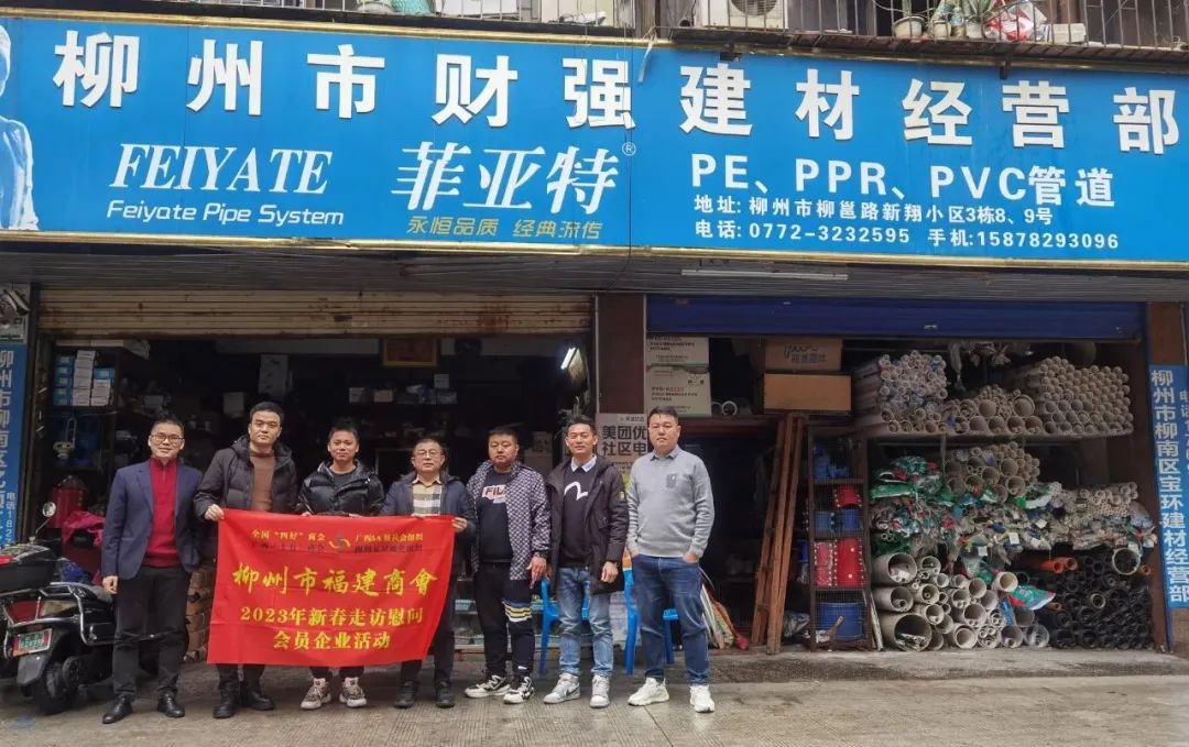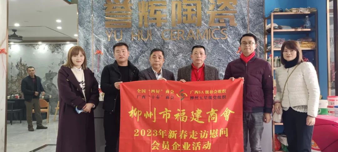 2023年2月8日,今年立春后的第五天,柳州城内外依然寒风凛冽,细雨绵绵,自然天气没有给人们带来一丝春天的气息。然而,在柳州市福建商会,上下却荡漾着春天的温暖。因为当天一大早,商会会长黄志荣、常务执行会长苏报谷、监事长郭炳林、党支部书记陈玉坤、第一书记梁西金、执行会长周庄顶、陈明凉、游品俤、总顾问傅志良等领导就带领商会34名副会长以上领导和柳州兴业银行、柳州桂林银行有关领导13人,共47人,穿上羽绒服、打着雨伞,带着旺旺大礼包和腐竹等慰问品,兵分8路,奔赴柳州市四面八方走访慰问会员企业,给会员送去了关爱和温暖,受到了会员们的热烈欢迎。本文开头的几句打油诗,正是当天商会领导新春走访会员企业活动的生动写照。