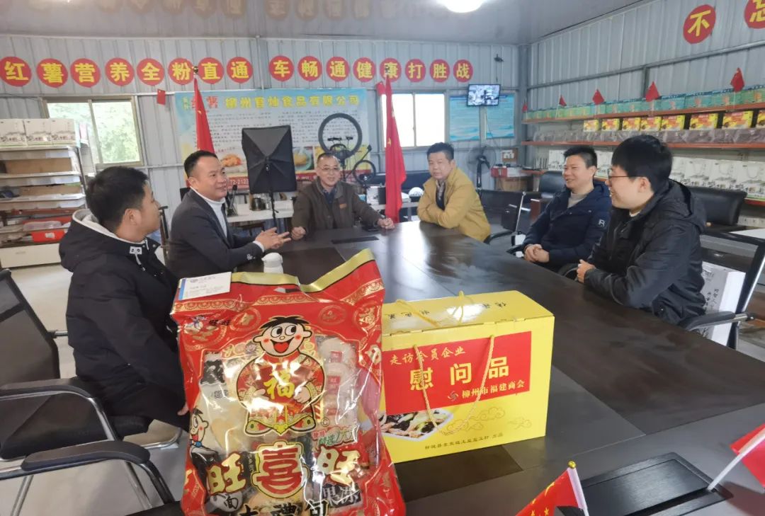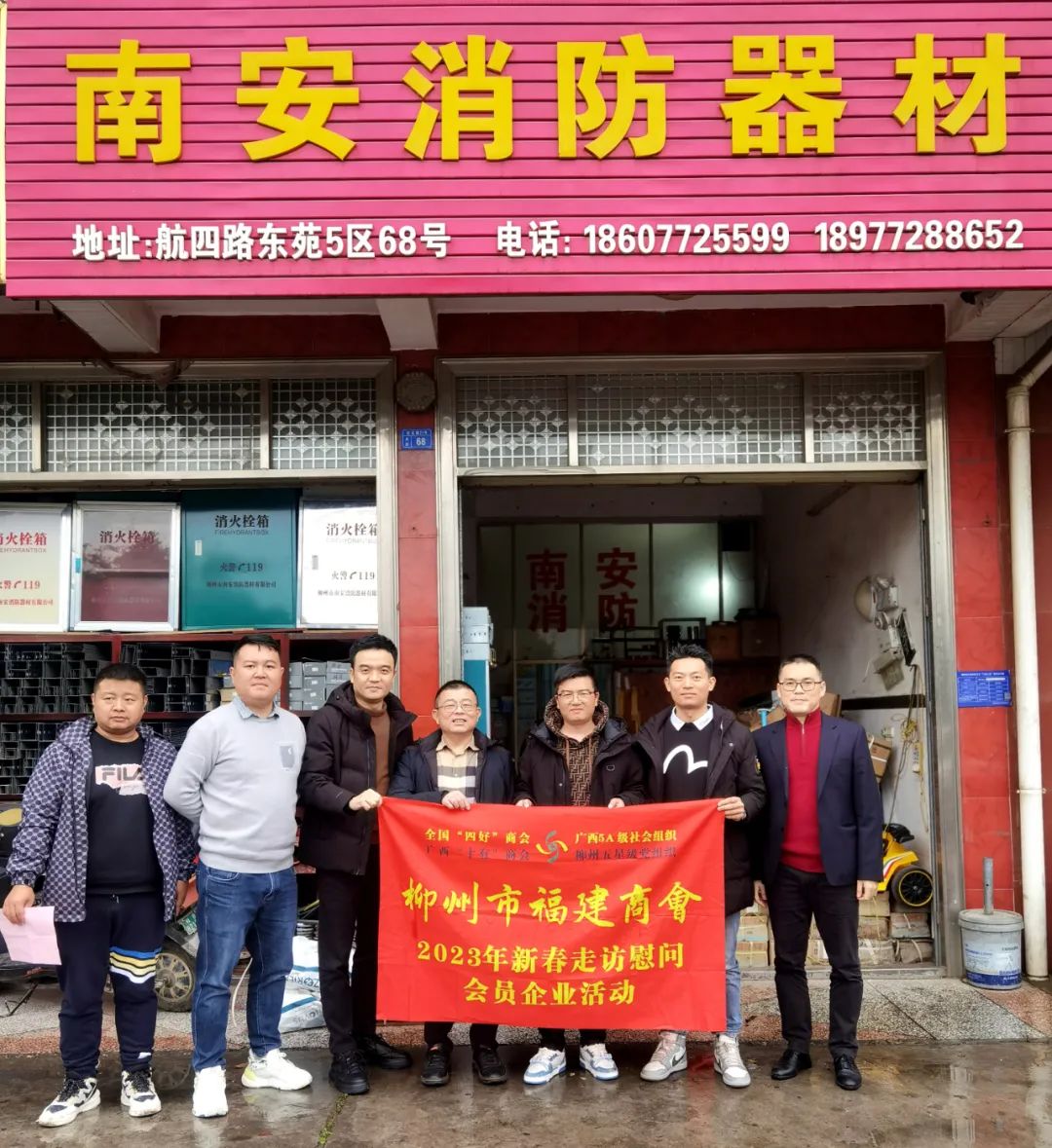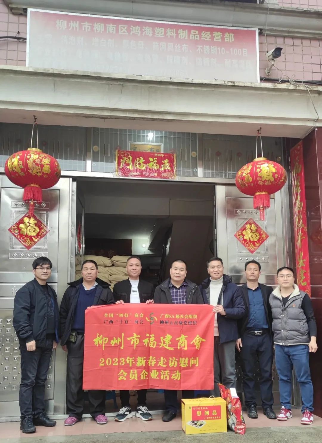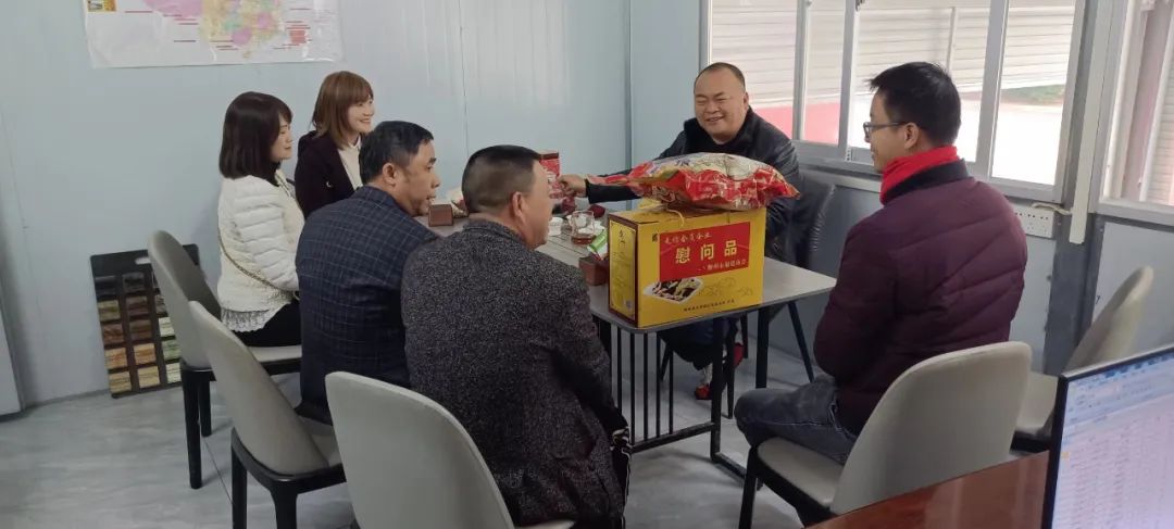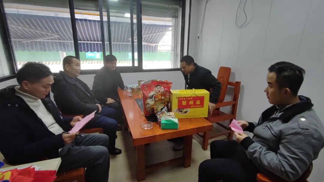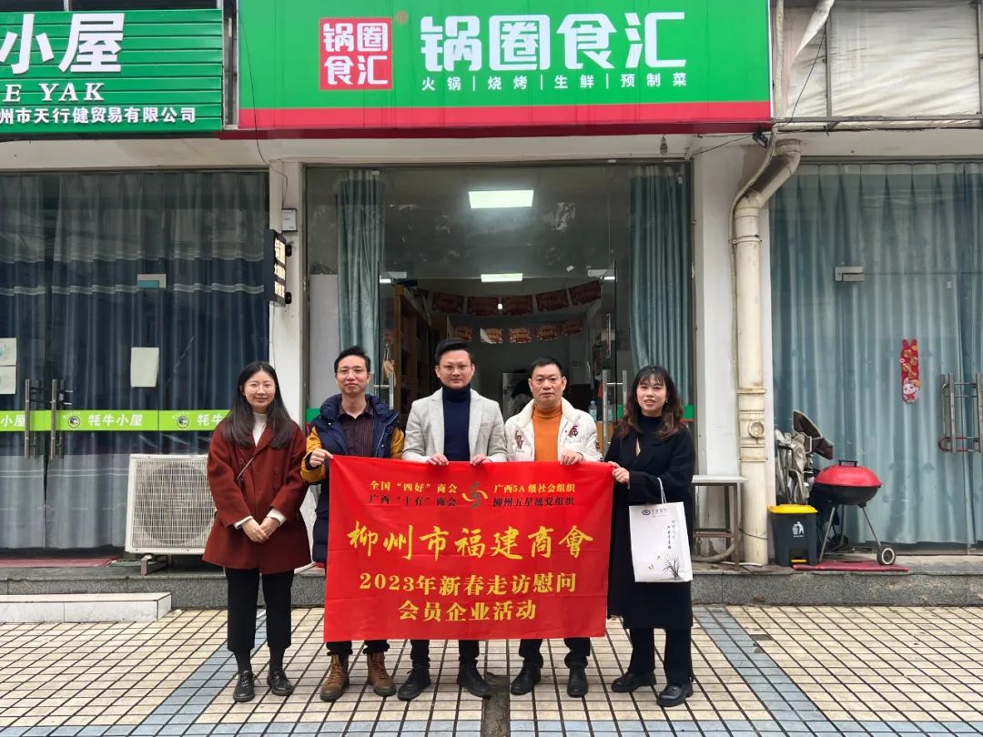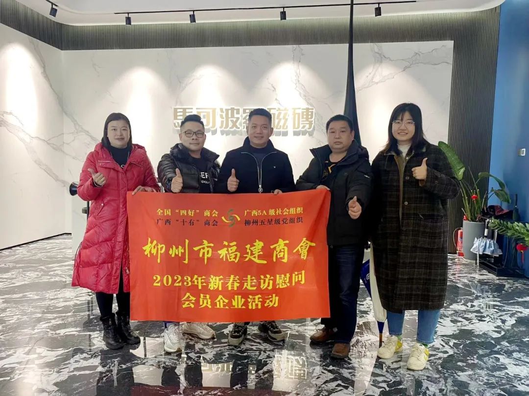 2023年2月8日,今年立春后的第五天,柳州城内外依然寒风凛冽,细雨绵绵,自然天气没有给人们带来一丝春天的气息。然而,在柳州市福建商会,上下却荡漾着春天的温暖。因为当天一大早,商会会长黄志荣、常务执行会长苏报谷、监事长郭炳林、党支部书记陈玉坤、第一书记梁西金、执行会长周庄顶、陈明凉、游品俤、总顾问傅志良等领导就带领商会34名副会长以上领导和柳州兴业银行、柳州桂林银行有关领导13人,共47人,穿上羽绒服、打着雨伞,带着旺旺大礼包和腐竹等慰问品,兵分8路,奔赴柳州市四面八方走访慰问会员企业,给会员送去了关爱和温暖,受到了会员们的热烈欢迎。本文开头的几句打油诗,正是当天商会领导新春走访会员企业活动的生动写照。