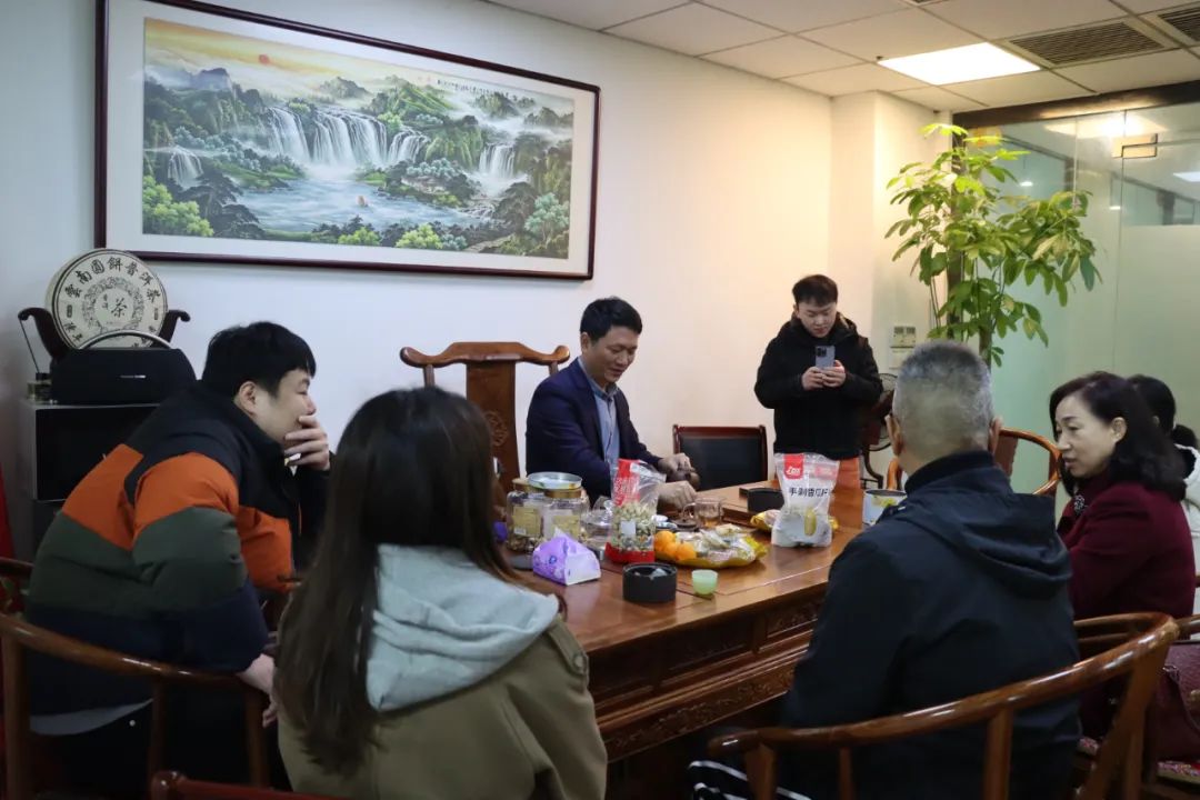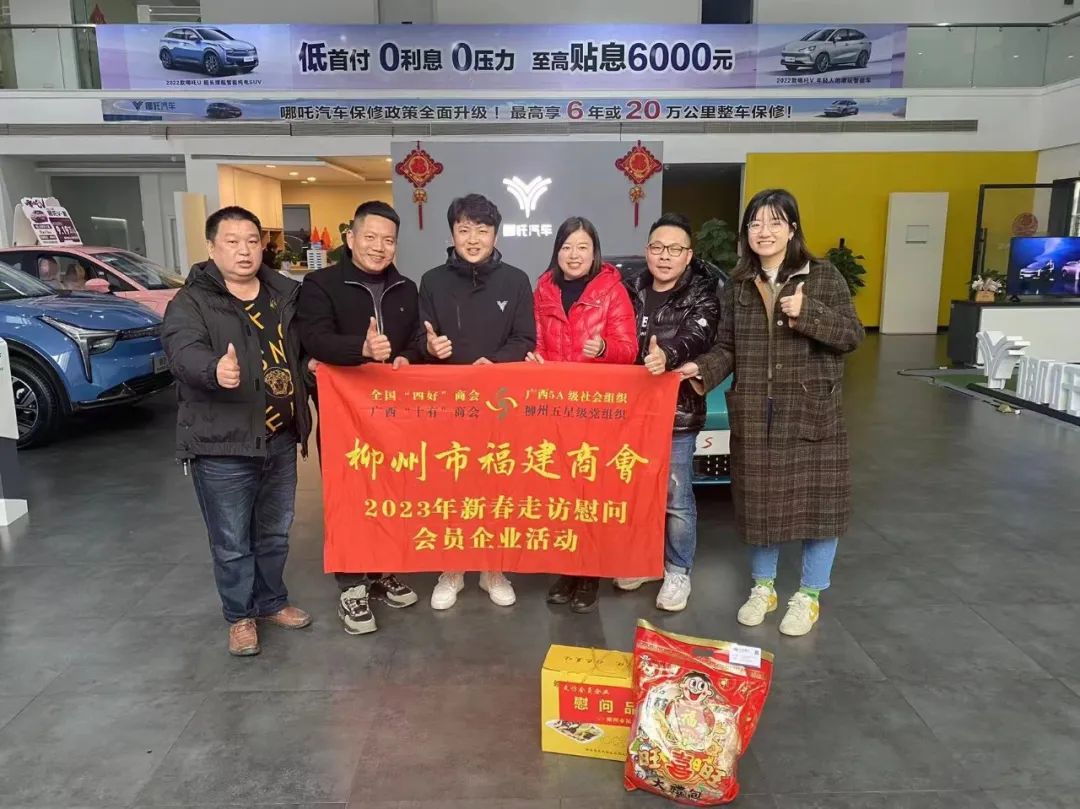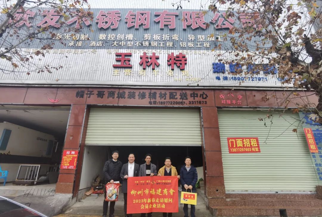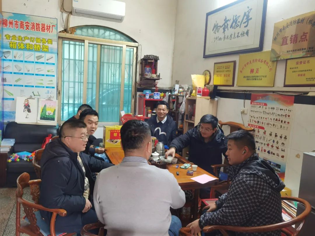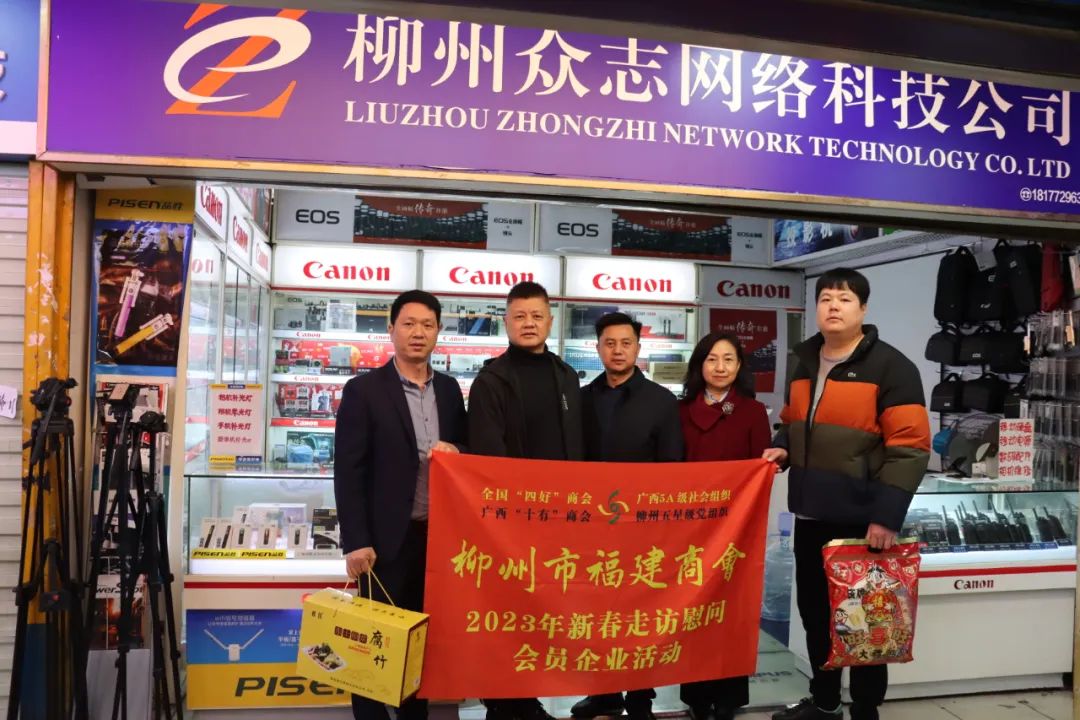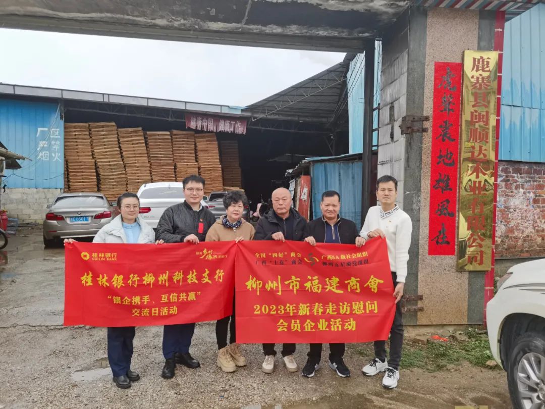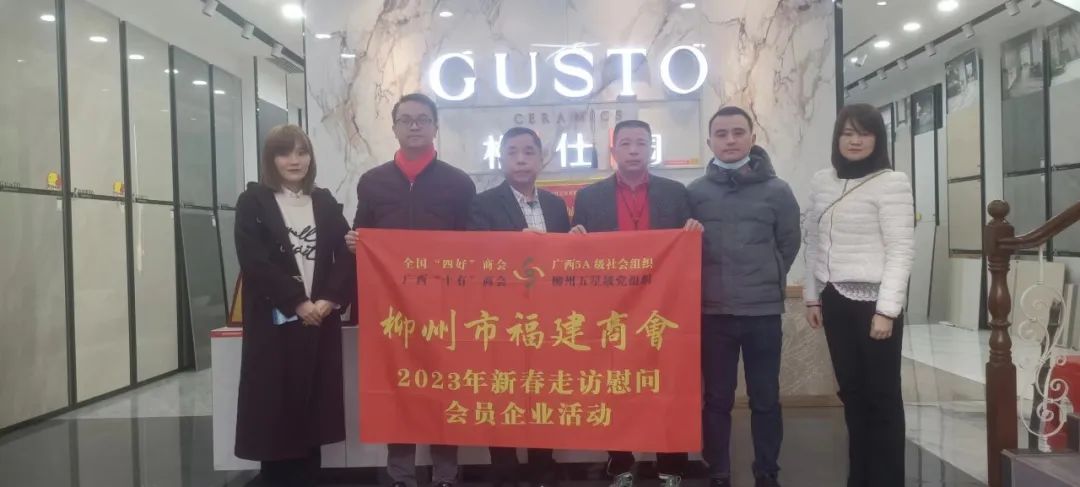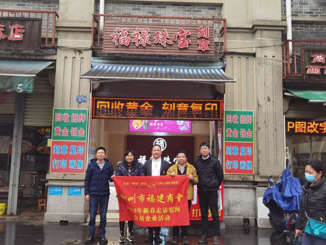 2023年2月8日,今年立春后的第五天,柳州城内外依然寒风凛冽,细雨绵绵,自然天气没有给人们带来一丝春天的气息。然而,在柳州市福建商会,上下却荡漾着春天的温暖。因为当天一大早,商会会长黄志荣、常务执行会长苏报谷、监事长郭炳林、党支部书记陈玉坤、第一书记梁西金、执行会长周庄顶、陈明凉、游品俤、总顾问傅志良等领导就带领商会34名副会长以上领导和柳州兴业银行、柳州桂林银行有关领导13人,共47人,穿上羽绒服、打着雨伞,带着旺旺大礼包和腐竹等慰问品,兵分8路,奔赴柳州市四面八方走访慰问会员企业,给会员送去了关爱和温暖,受到了会员们的热烈欢迎。本文开头的几句打油诗,正是当天商会领导新春走访会员企业活动的生动写照。