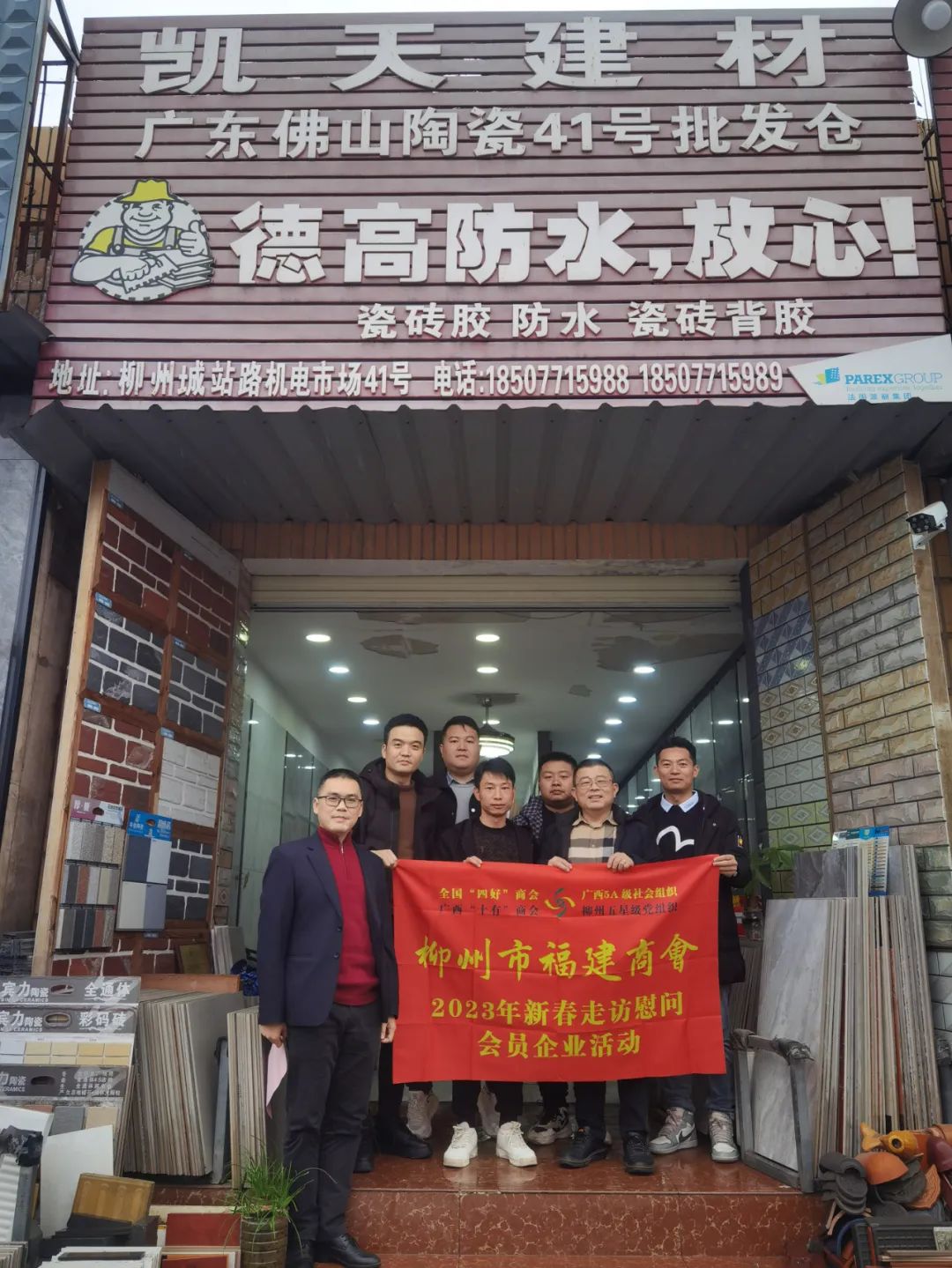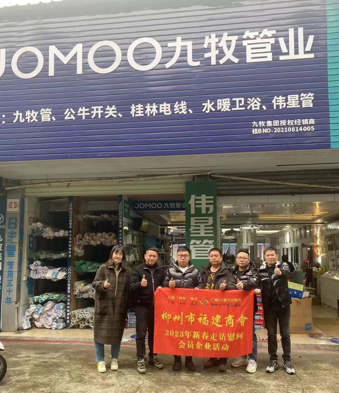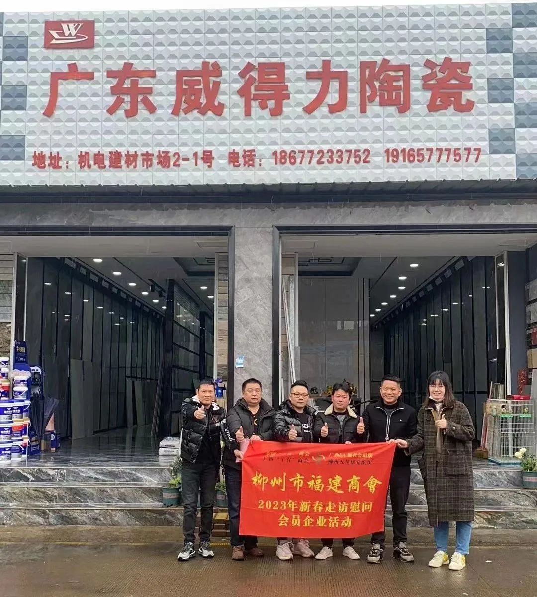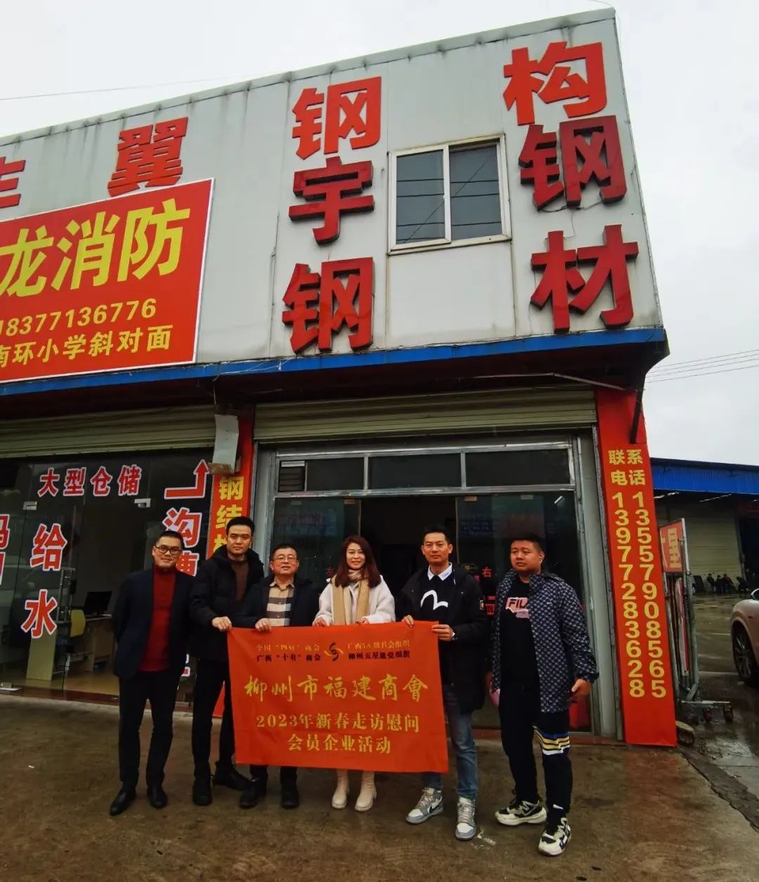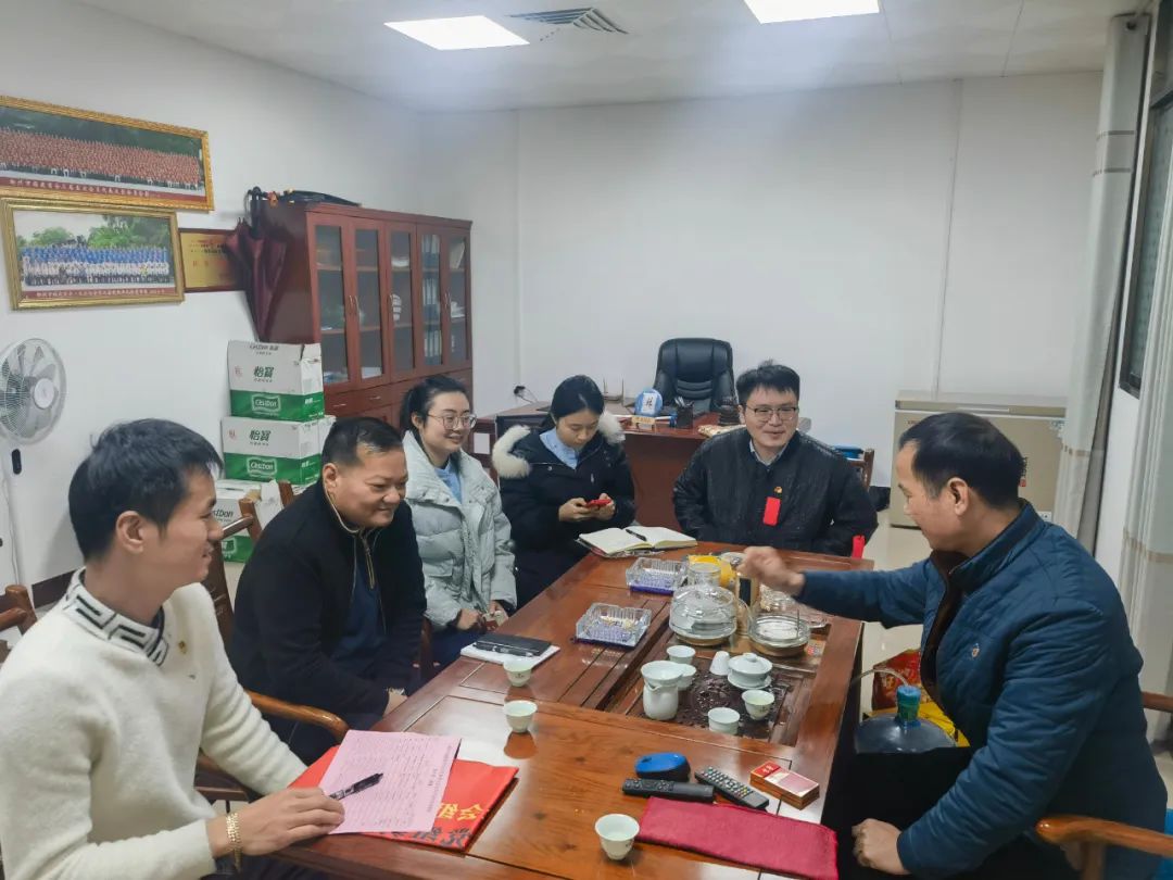2023年2月8日,今年立春后的第五天,柳州城内外依然寒风凛冽,细雨绵绵,自然天气没有给人们带来一丝春天的气息。然而,在柳州市福建商会,上下却荡漾着春天的温暖。因为当天一大早,商会会长黄志荣、常务执行会长苏报谷、监事长郭炳林、党支部书记陈玉坤、第一书记梁西金、执行会长周庄顶、陈明凉、游品俤、总顾问傅志良等领导就带领商会34名副会长以上领导和柳州兴业银行、柳州桂林银行有关领导13人,共47人,穿上羽绒服、打着雨伞,带着旺旺大礼包和腐竹等慰问品,兵分8路,奔赴柳州市四面八方走访慰问会员企业,给会员送去了关爱和温暖,受到了会员们的热烈欢迎。本文开头的几句打油诗,正是当天商会领导新春走访会员企业活动的生动写照。