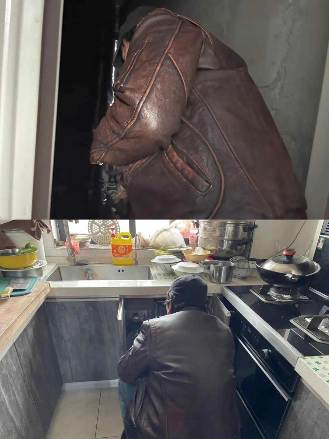 云栖花园社区物业工作人员入户给住户解决水管破裂的问题。