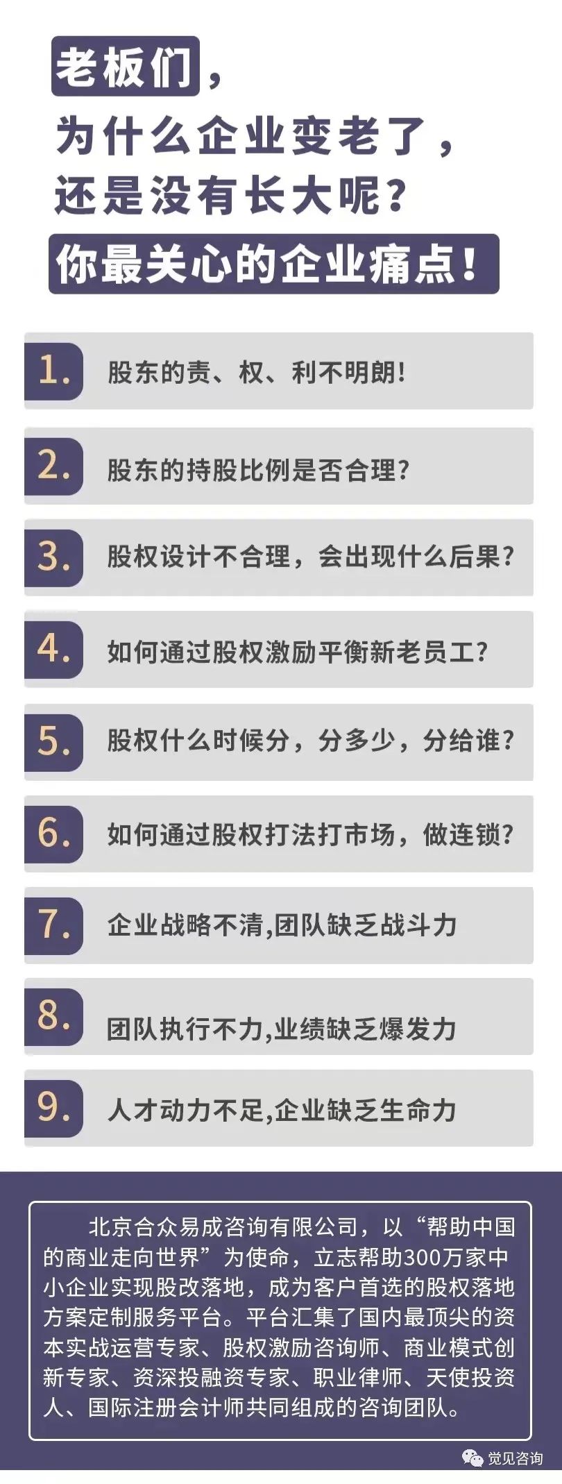 扬州觉见咨询(赛微思智业)2023年2月17日(周五)特邀北京合众易成咨询创始人、合众易成股权投资研究院院长、中国式股权落地导师 项尚老师 于扬州 举办为期一天《股权增长新思维:合伙人股权设计与股权激励》总裁精品班,众多案例精彩拆解,创造全新的商业股权架构认知,打造新团队实现业绩倍增!名额有限,速速报名。