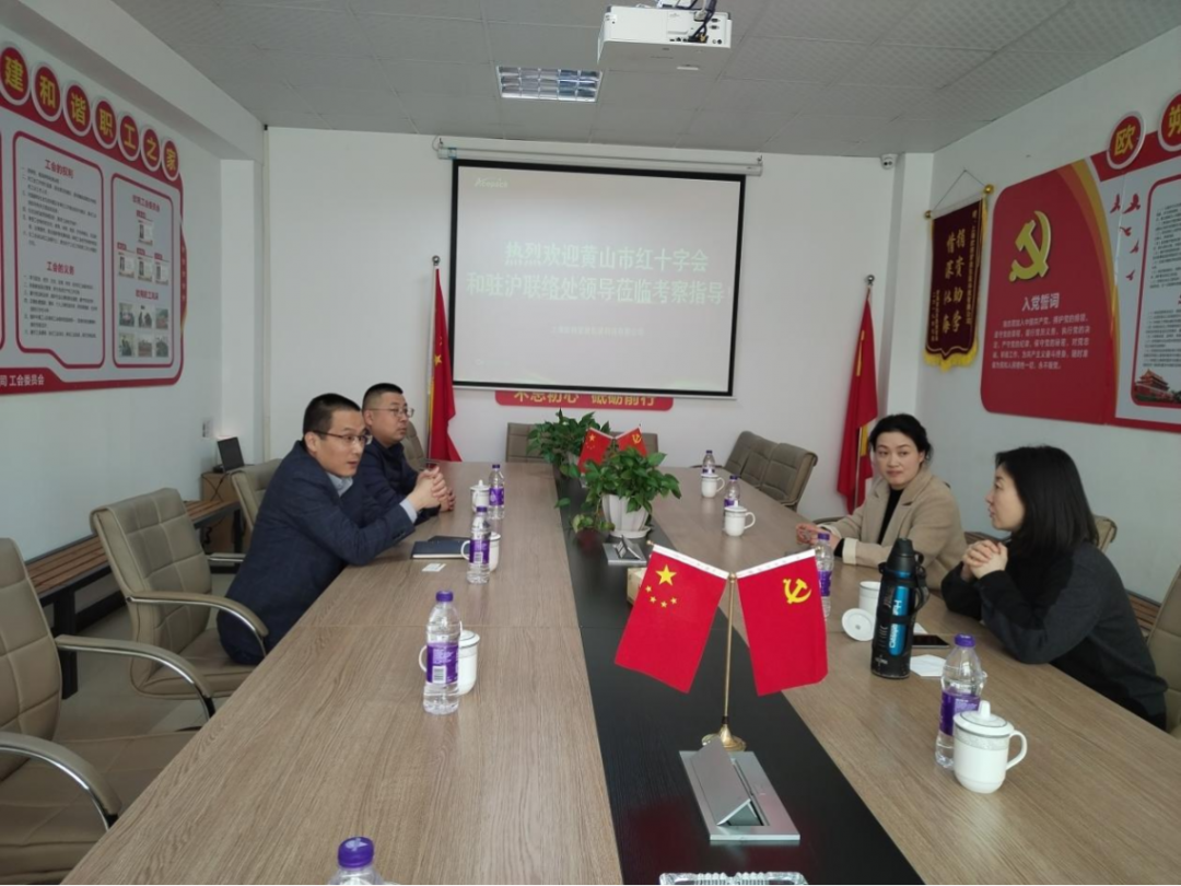 1月30日,新春伊始,安徽省黄山市红十字会常务副会长刘英、黄山市驻沪联络处副主任顾琼一行莅临我会企业走访交流。