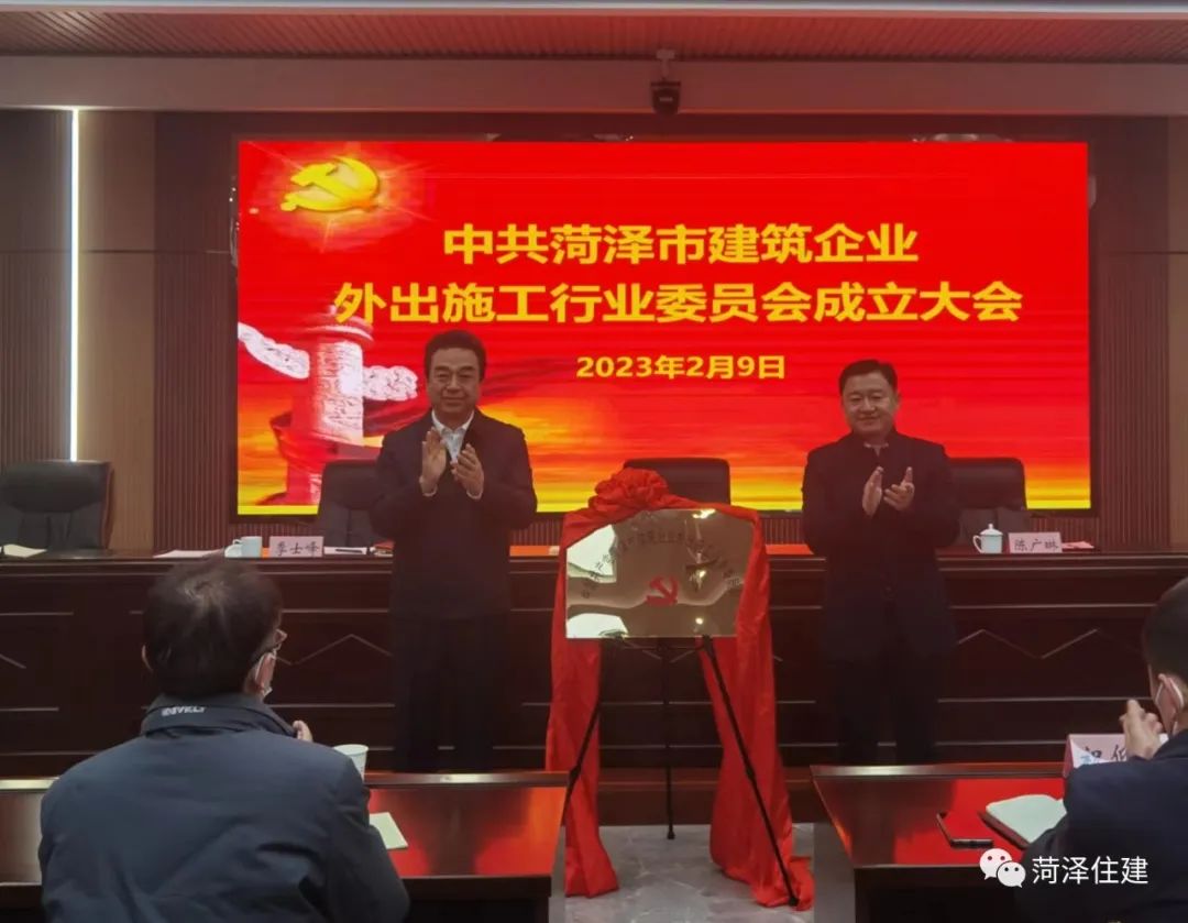 2月9日,中共菏泽市建筑企业外出施工行业党委成立大会召开,传达省、市有关行业党委的工作部署,宣布全市建筑企业外出施工行业党委成立并揭牌。省住建厅外联站主任、行业党委副书记戚立强、市委组织部两新工委专职副书记陈广琳出席会议并致辞。市住建局党组书记、局长季士峰出席会议并讲话。局党组成员、市建筑企业外出施工行业党委书记张尚伟作表态发言。