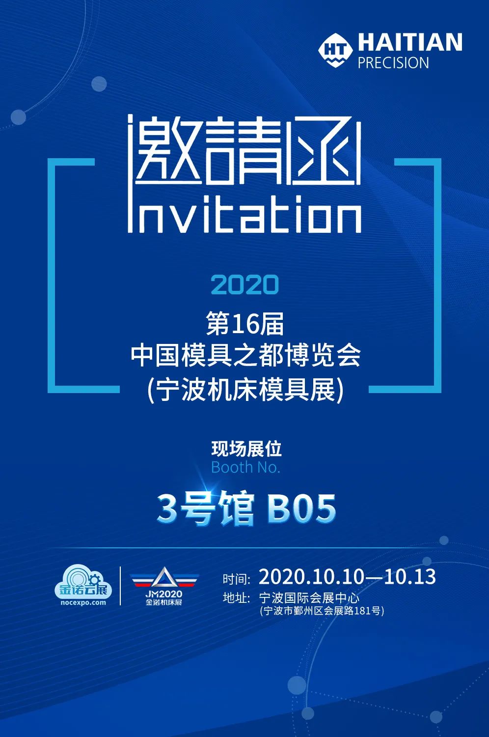 10月10日—13日,2020第16届中国模具之都博览会将在宁波国际会展中心举办。此次展会展出面积60000平米,汇聚全球700多家优质参展商,为长三角装备制造业转型升级提供高效路径,将集中展现全球工业自动化的最新科技成果和全面解决方案。海天精工展位号3号馆B05,期待您莅临参观!