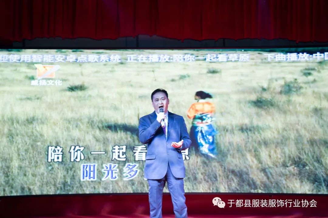 ▲协会副会长单位、赣州辉之源服饰有限公司总经理陈辉演唱《陪你一起看草原》
