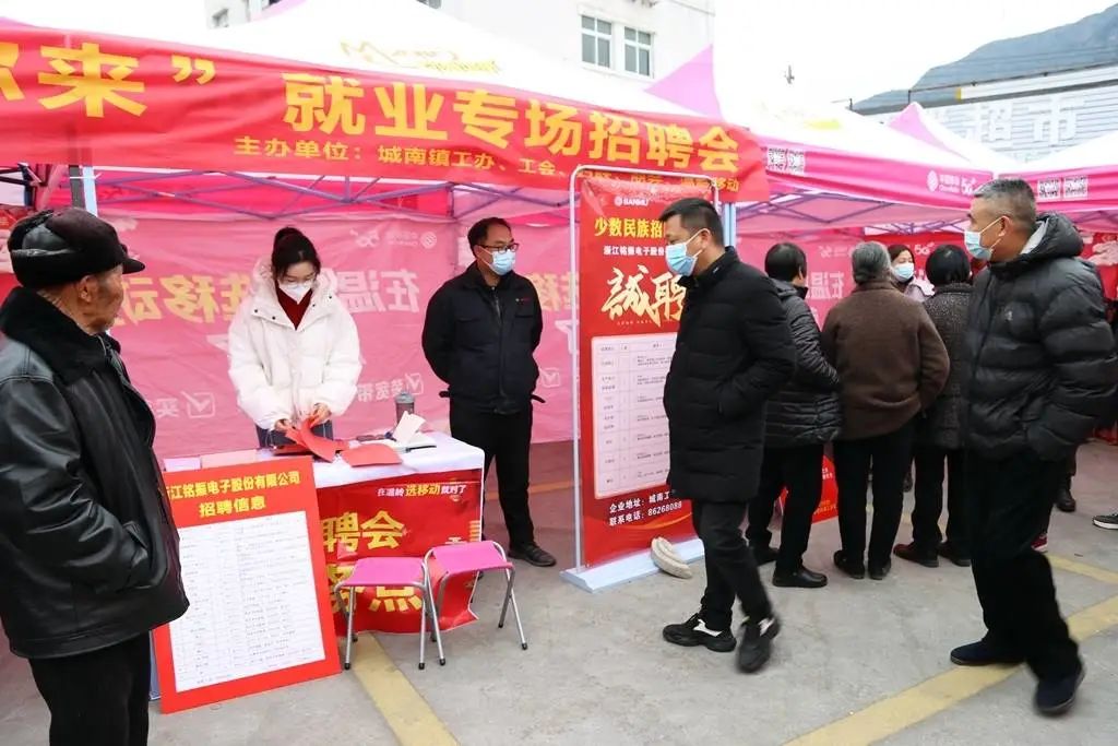 2月3日,城南镇商会和当地工会、妇联,在城南镇工办的组织下,在白溪工业区开展“灵秀城南 ‘职’等你来”就业专场招聘会,帮助辖区企业尽快招足工人。
