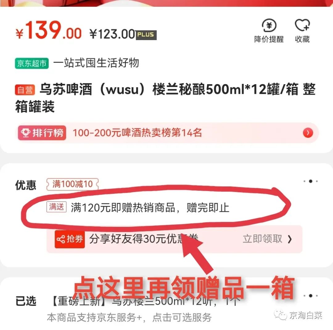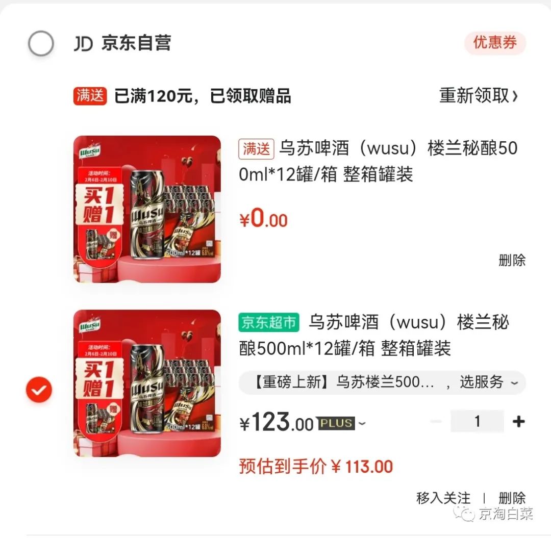 ♦plus会员 113买 500ml*12罐的乌苏楼兰秘酿两箱?!