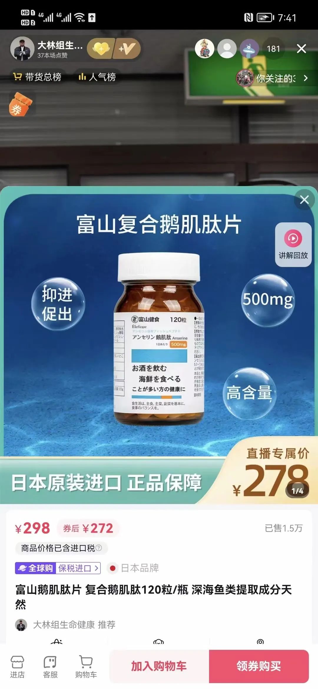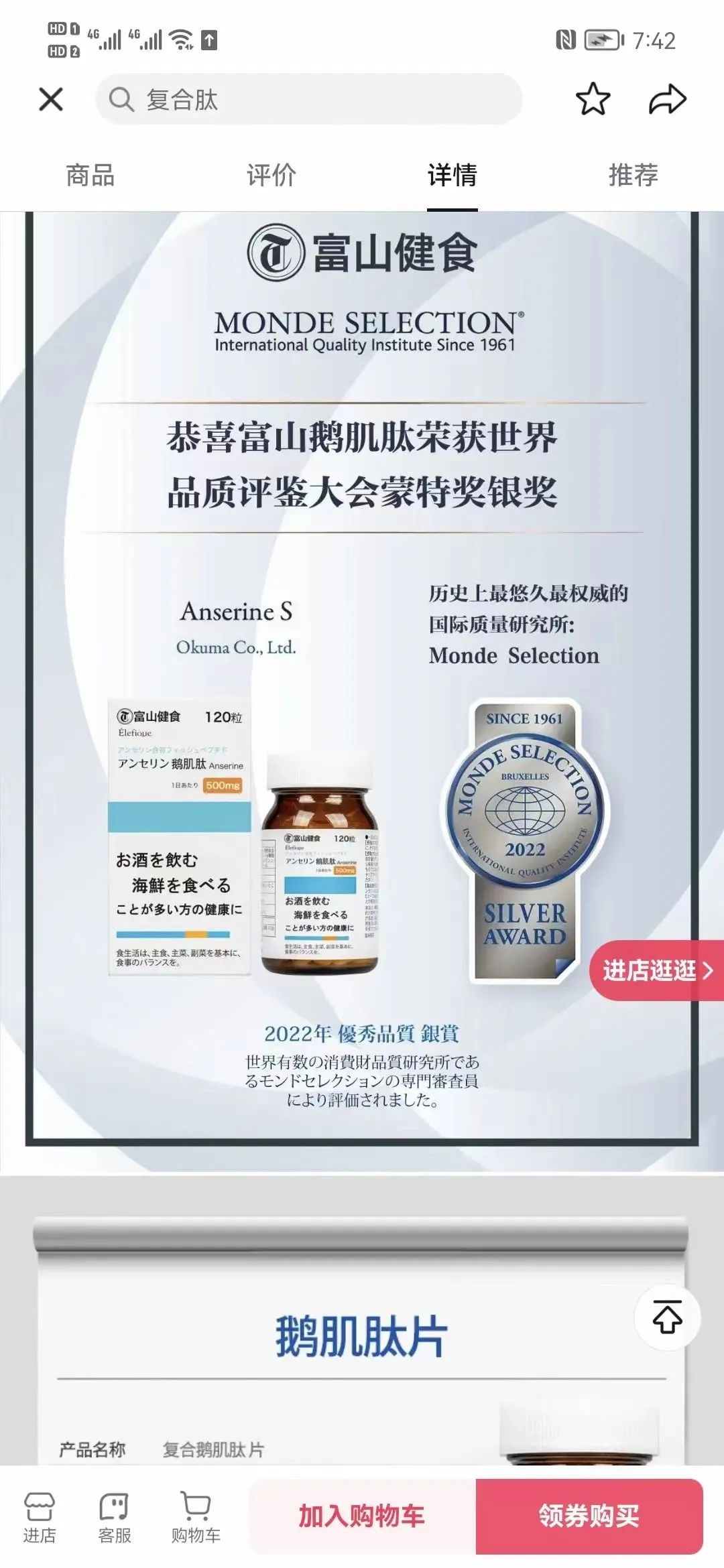 500mg高含量鹅肌肽
