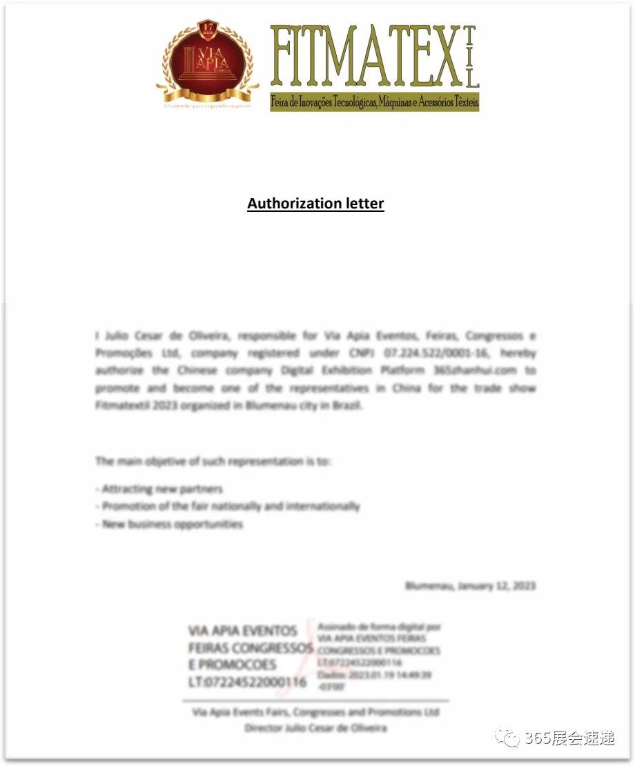 近日,365展会平台365zhanhui.com获得巴西纺织品博览会(FITMATEXTIL)授权,在中国代理宣传及推广招商。